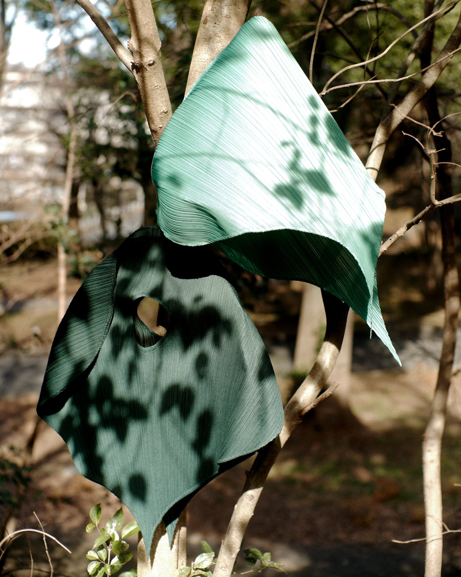 多様な葉の形から着想を得た「リーフ(LEAF)」シリーズ。春の息吹を感じるフレッシュなグリーンのノースリーブトップとパンツは、本物の葉のような有機的フォルムや、葉脈を思わせる表情豊かなプリーツラインが特徴。風や身体の動きに合わせてひらひらと輪郭を変えるさまは、軽やかな春の足取りや心のリズムに寄り添う。トップは、広げて置くと一枚の葉の形に姿を変える、プリーツ プリーズ イッセイ ミヤケらしい遊び心に溢れた一着。
