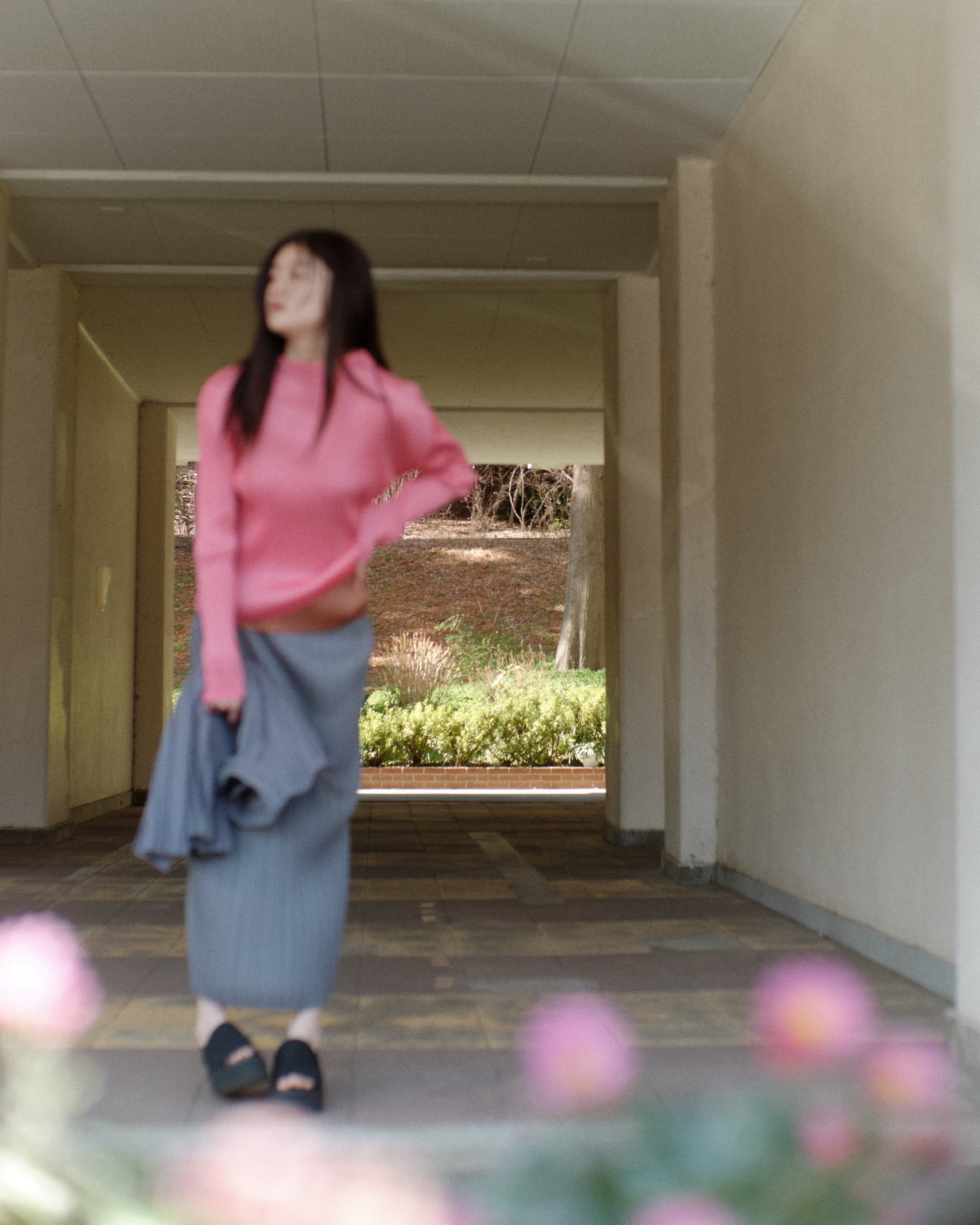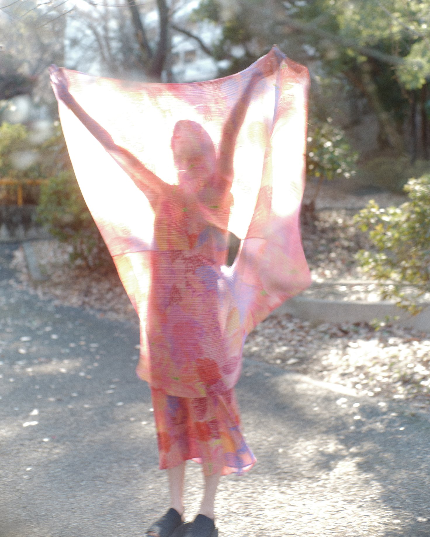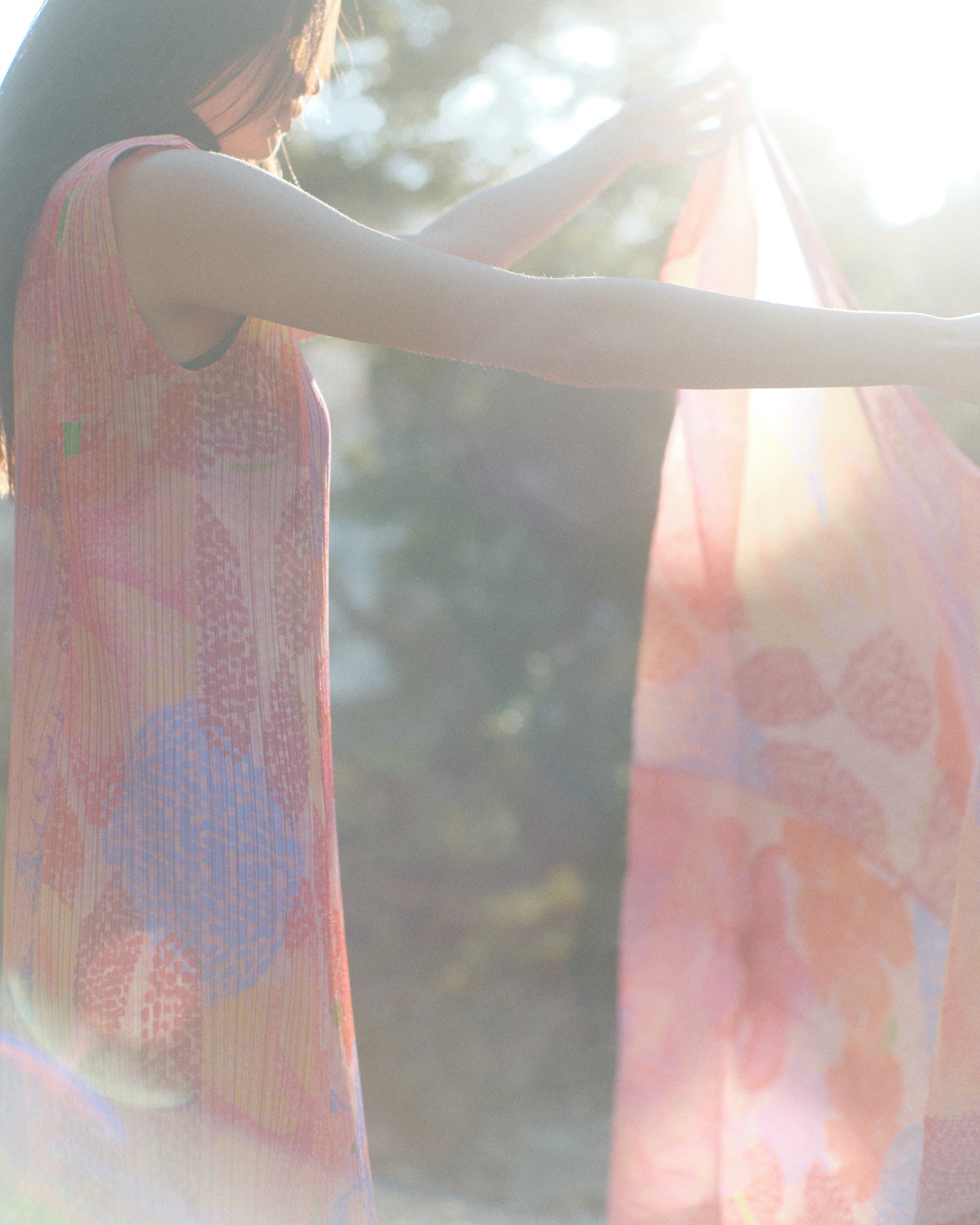 まだ少し肌寒さが残る、ある春のはじめの日。窓から差し込むやわらかな陽の光に誘われて、億劫な気持ちを脱ぎ捨て外に出る。いつもはどこか目的地へ向かうために歩く道を、「ただ歩くこと」を目的に歩いてみる。頬や背中を照らす陽の光のあたたかさ、道端に咲く花の可憐さ、楽しげな小鳥たちのさえずり——昨日までもすべてがそこにあったはずなのに、心ひとつでこんなにも世界は美しく、満ち足りて見える。朗らかな服の色が、肌に寄り添う繊細なプリーツが、私の心と身体の境界線を春の世界に向かって溶かしてゆく。