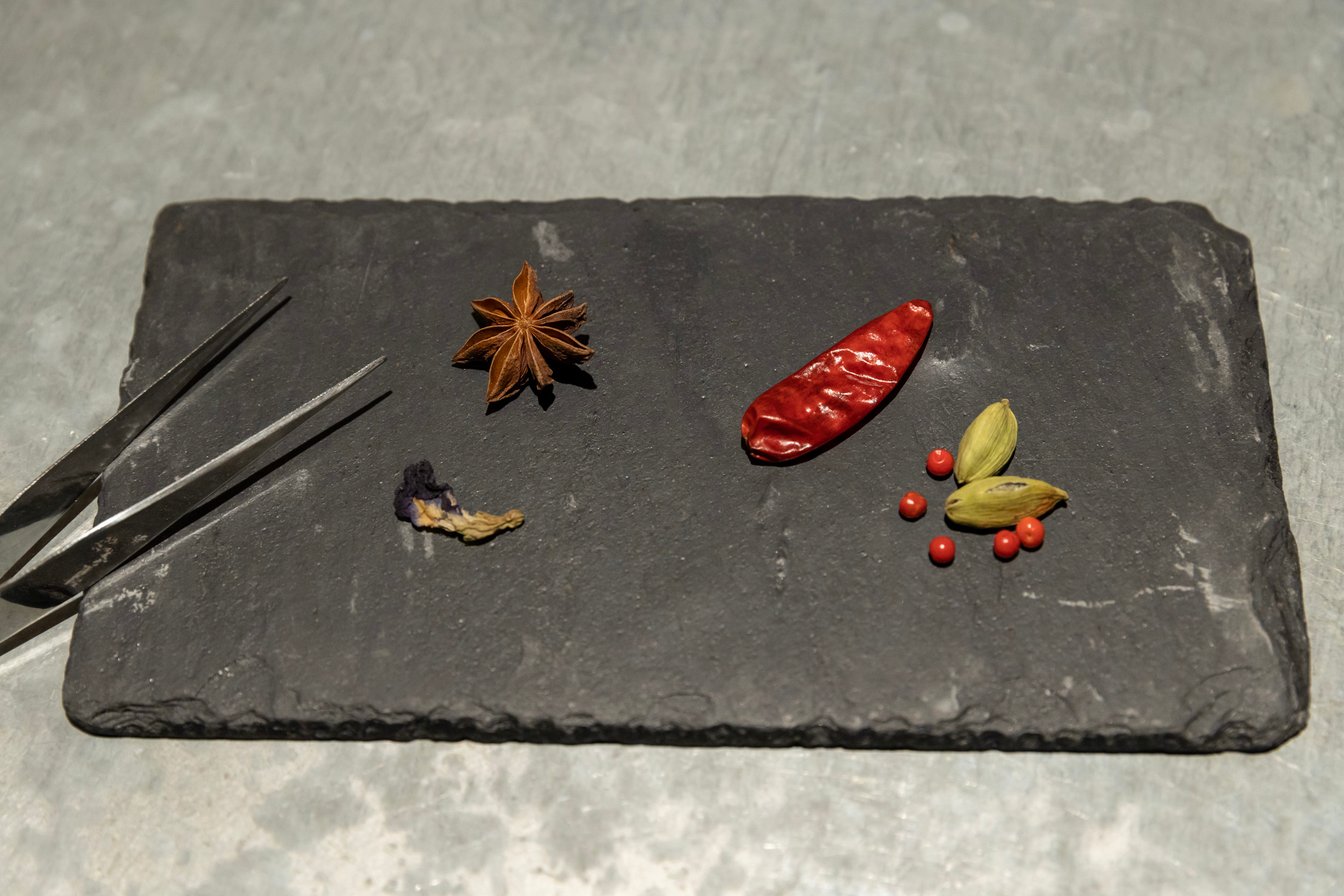 #0715 スモーキー リッチ ベースは、辛口かつアルコール度数55度という高アルコール。重厚なキック感と香ばしいたばこ葉の香りが特徴的なメビウス・リッチに負けない一品となっており、ウィスキーで用いられるウッドチップで香り付けされたスモーキーさは、メビウス・リッチ特有のコクや芳醇さに深みを与えます。スモーキーな香ばしさやジン特有の苦味に負けない舌触りや喉越しを実現するために用意されたのは5つの追加ボタニカル。辛味を引き立てる唐辛子やピンクペッパー、スパイスの女王とも称されるカルダモン、大人のアクセントを生み出す八角などを自由に漬け込むことができます。また、東南アジアではハーブティとして嗜まれているバタフライピーを加えることでジンがメビウス・リッチのパッケージを彷彿とさせる濃紺に変化。たばこを吸いながら、時間の流れと共に変化していくジンの色合いも愉しんでみては?