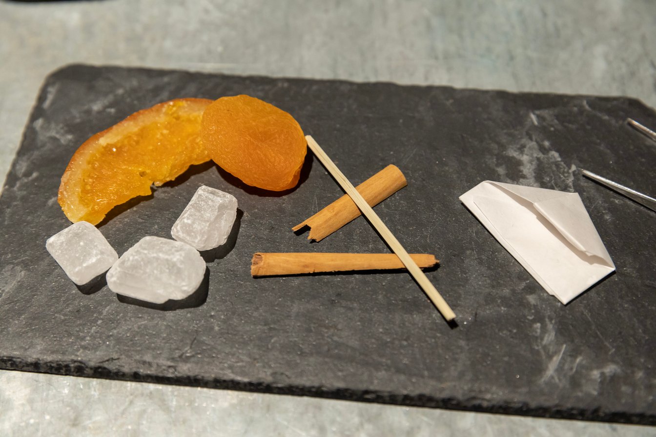 #0616 ミント コールド ベースは、「メビウス・メンソール・コールド」のキレのある氷冷メンソールを引き立たせるペパーミントをキーボタニカルに採用。ジュニパーベリー、レモングラス、カカオニブなどを加えることで、爽やかな広がりを感じることができます。また、メビウス・メンソール・コールドの冷涼感を邪魔する際立たせる"甘み"にフォーカス。氷砂糖、ドライアプリコット、ドライオレンジの追加ボタニカルを用いて自分好みの甘みに仕上げるのも◎。クールなイメージを印象づける銀粉をいれることで、底に沈んでゆく銀粉を眺めながらたばこを嗜むことも。静かな時間の流れ愉しむことができるのも魅力の一つです。