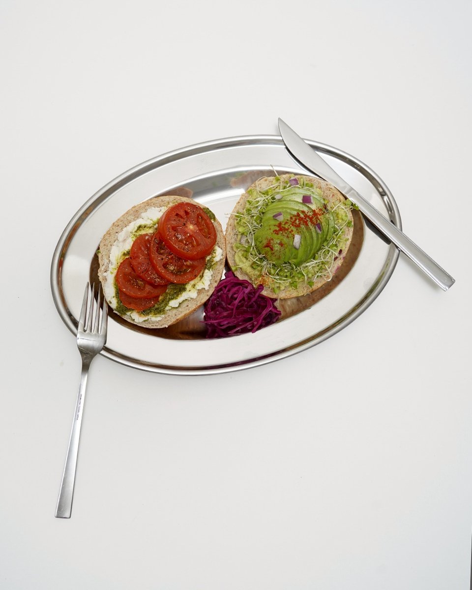 価格設定は従業員たちの「リアルな意見」を反映。ドリンクはアメリカーノ(660円)、カフェラテ(770円)、エスプレッソトニック(880円)、赤ワイン(1210円)、白ワイン(1210円)などで、シグネチャーフードの全粒粉のベーグルを使ったオープンサンドはシングル(770円)とダブル(1320円)を用意。デザートはバナナケーキ(440円)、ガトーショコラ(770円)、バスクチーズケーキ(770円)などを提供する。