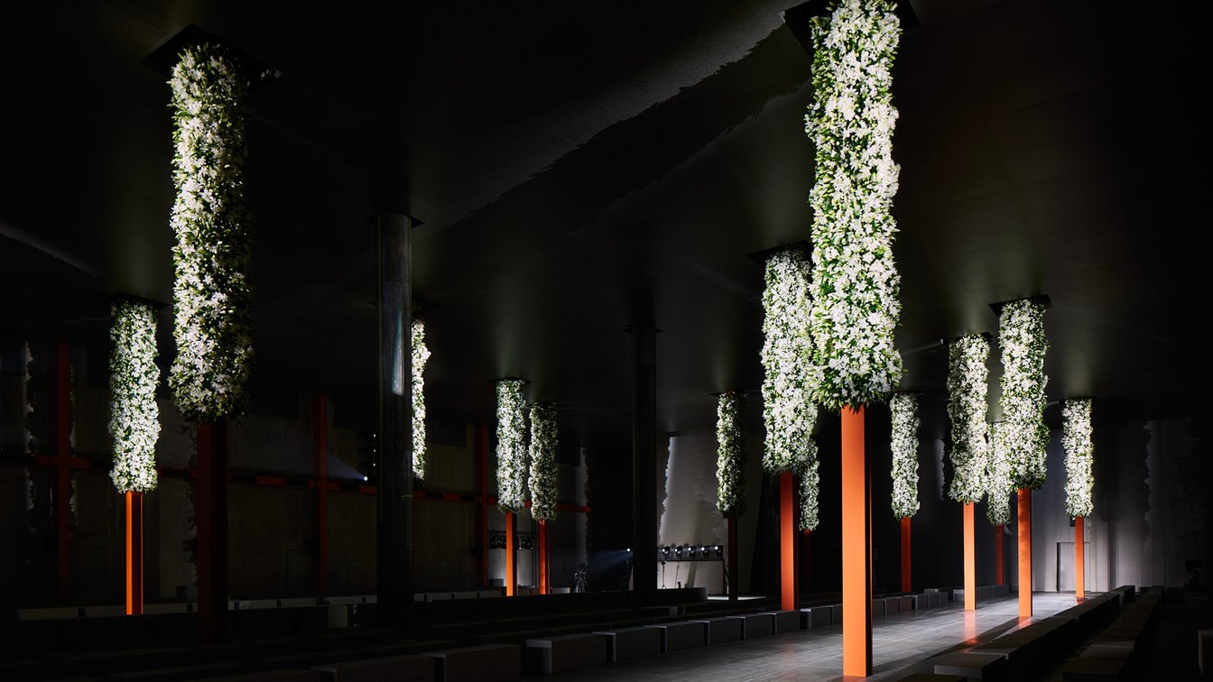今シーズンのプラダは、「典型的なユニフォームを再考し、称え、重要性をもたらすことは、それを着ている人や彼らの行動、生活までも大切にするということ」とラフが話すように、外見だけではない、内に込められた優しさや愛情、思いやりのメッセージをコレクションを通じて伝えた。それは天井が昇降し、百合の花の香りが徐々に会場に立ち込める演出にも見てとれ、日常生活にある何気ない「豊かさ」への気づきを与えてくれるかのようだった。