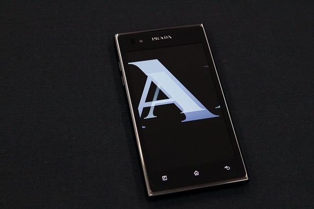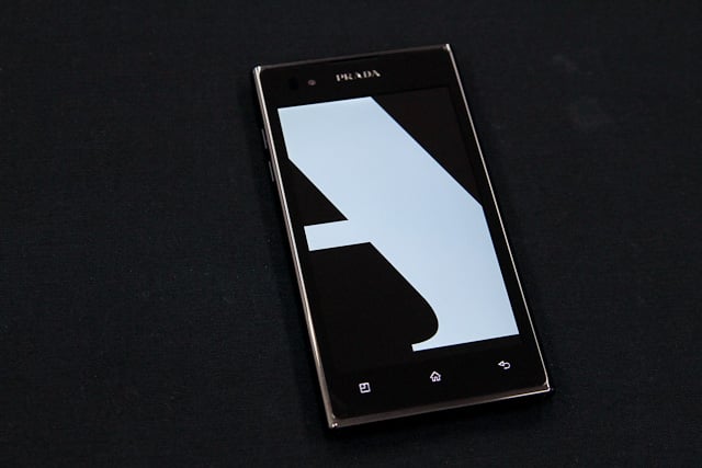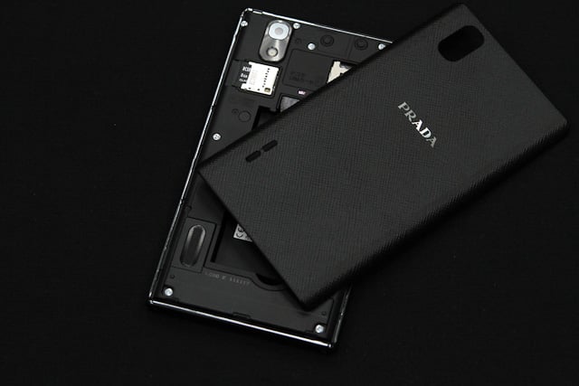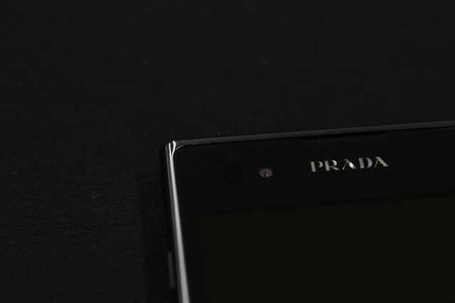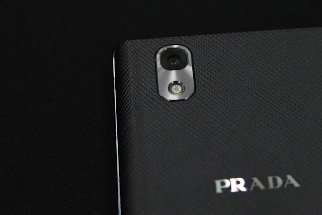 本体の裏(リアカバー)は、ブランドを代表するカーフレザー「サフィアーノ」をイメージした素材を使用。手に取ったときの感触も「PRADA」です。通話している時でも「PRADA phone」とわかるように背面にもしっかりとロゴがあしらわれています。有効画素数810万画素の写真が撮影できるメインカメラと、その下にはフラッシュも付いています。専用画像処理エンジンとハードウェアアクセラレータで写真の処理は快適とのこと。