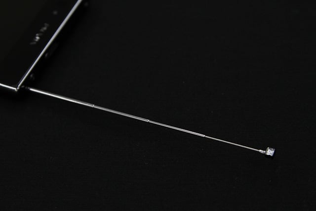 ワンセグアンテナを伸ばしてみました。12cmほどでいろいろな角度に曲げることができます。本体下部にはマイクがついています。