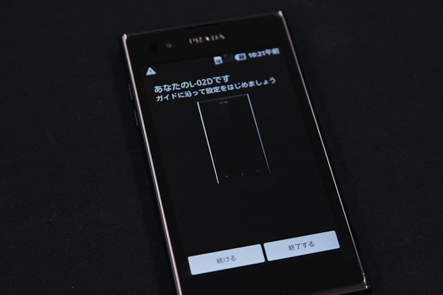 こちらはスタートアップ画面。初めての人に向けて親切にガイドしてくれるようですね。すでにGoogle アカウントをお持ちの方はログインするだけでアドレス帳などのデータをすべて同期してくれます。「docomo with series PRADA phone by LG L-02D」のCPUはデュアルコア1GHzのARMコアで、しかもデュアルメモリなので高速な処理が可能となってます。