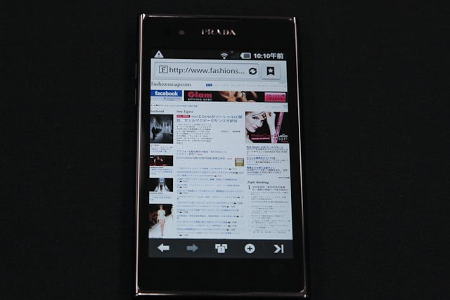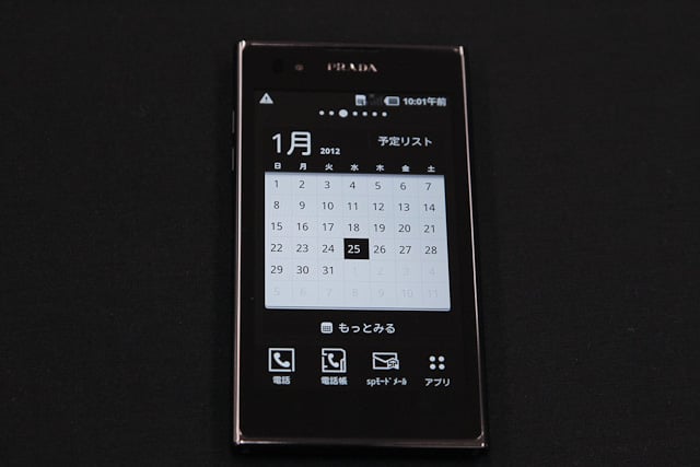 回線は3Gで、Wi-Fiテザリング機能付きです。ドコモならではのサービスとして「おサイフケータイ」の使用できます。チップセットはTI社製OMAP4430(CPUはデュアルコア1GHz駆動)。2つのメモリを用いて効率的な処理が可能とのこと。アイコンやウィジェット、フォントなどは「PRADA」の世界観を追求した PRADA GUI インターフェースとなっています。