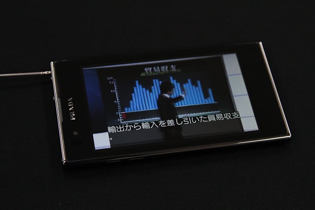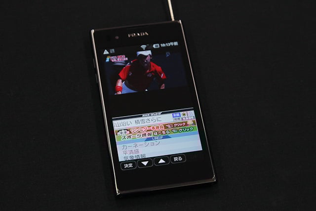 ワンセグに対応する機種ということなので、テレビもつけてみました。縦画面だと下にいろいろな情報が出てきます。横画面にすると放映中の字幕が出てきました。