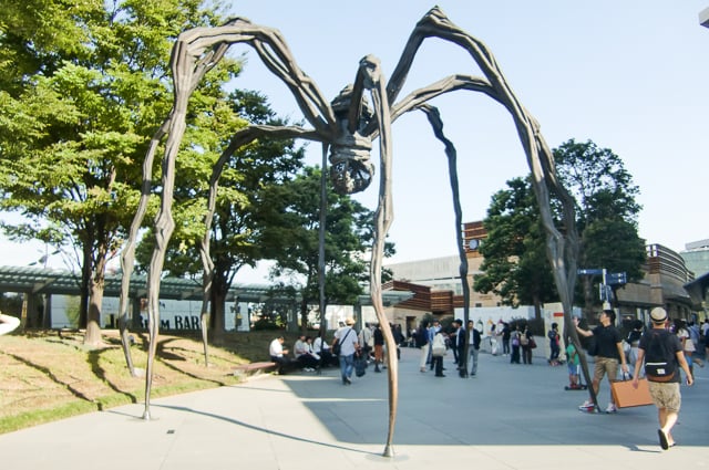 こちらは、ニューヨーク、ロンドン、ソウルなど世界9ヶ所にある、ルイーズ・ブルジョワ氏による巨大蜘蛛ママンシリーズの1つで、母への愛情を意識した作品だと言われています。ブロンズ製のお腹の中には、20個の大理石で作られた卵を抱えており、多くの人が足の合間に集う様子はまさに人々を包み込む母親のようです。