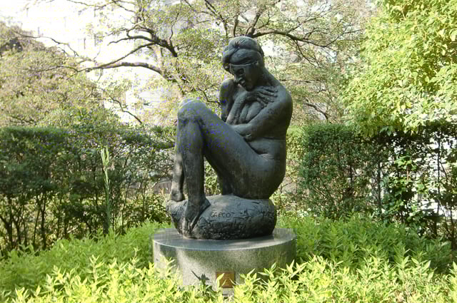 休日、多くの子どもが遊んでいる公園内でひっそりと佇んでいるのがこの像。作者のエミリオ・グレコ氏は、「水浴の女」で知られるイタリアを代表する彫刻家です。海に囲まれたシチリア島出身であることも、この海の精を制作した由縁なのでしょうか。