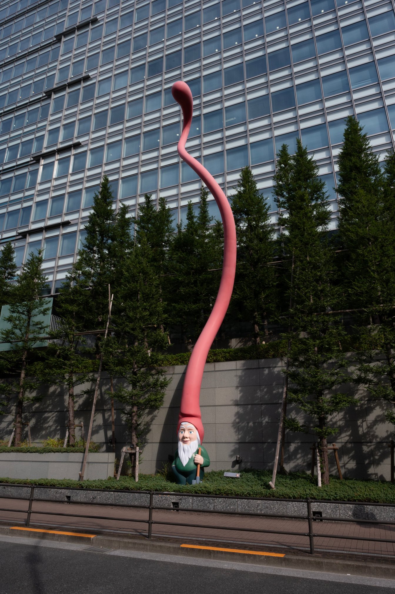 赤い帽子が高く伸びた様子がなんともユニークな小人の彫刻作品。作者のインゲス・デナーによると、「グローイング・ガーデナー」という名の通り、この小人はガーデナー(庭師)、つまり森の守り神なんだそうです。大崎のビル街で一際独特な雰囲気を醸し出す小人。東京の街から突然、森の中に迷い込んだような気分になりますね。