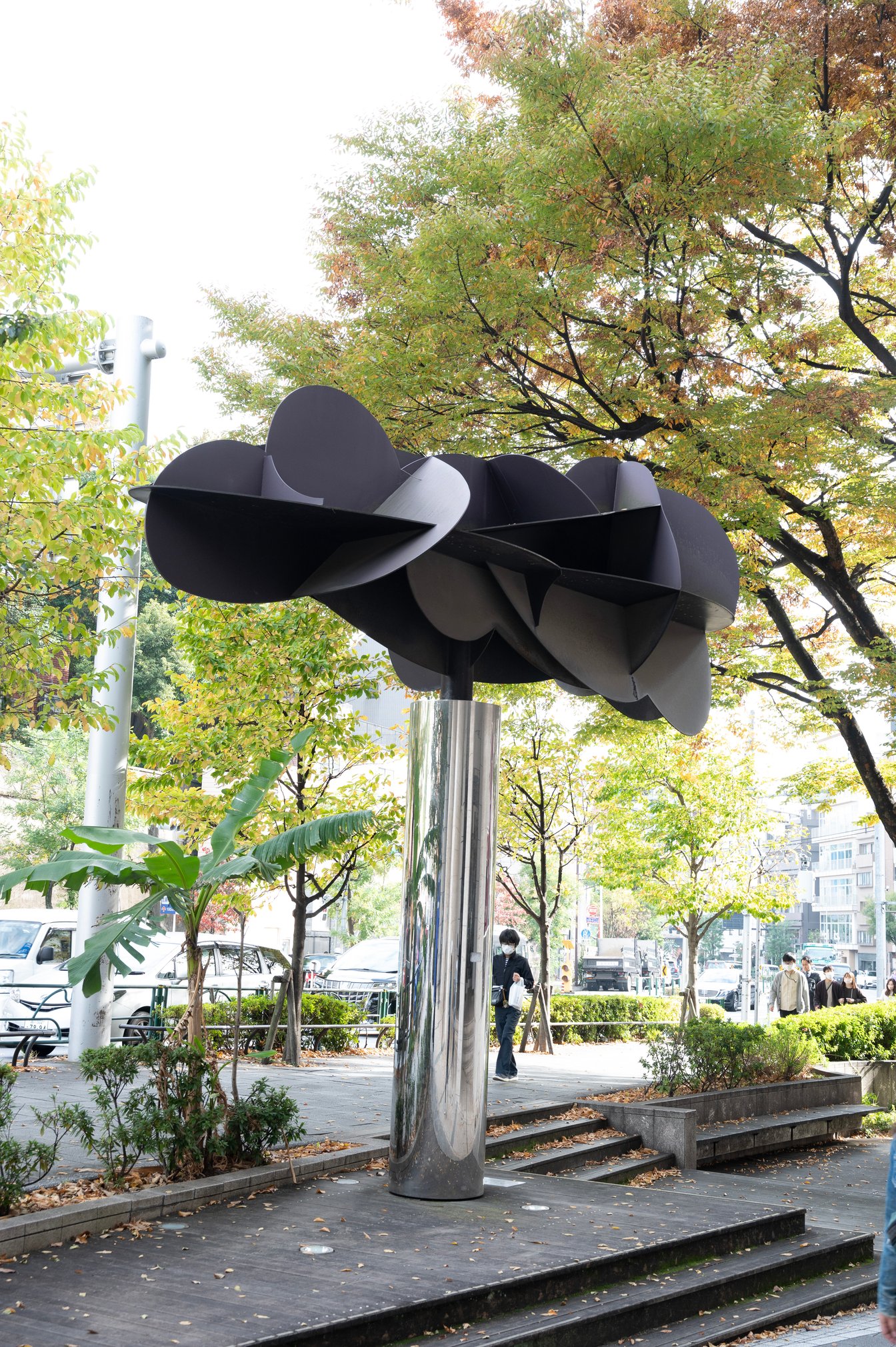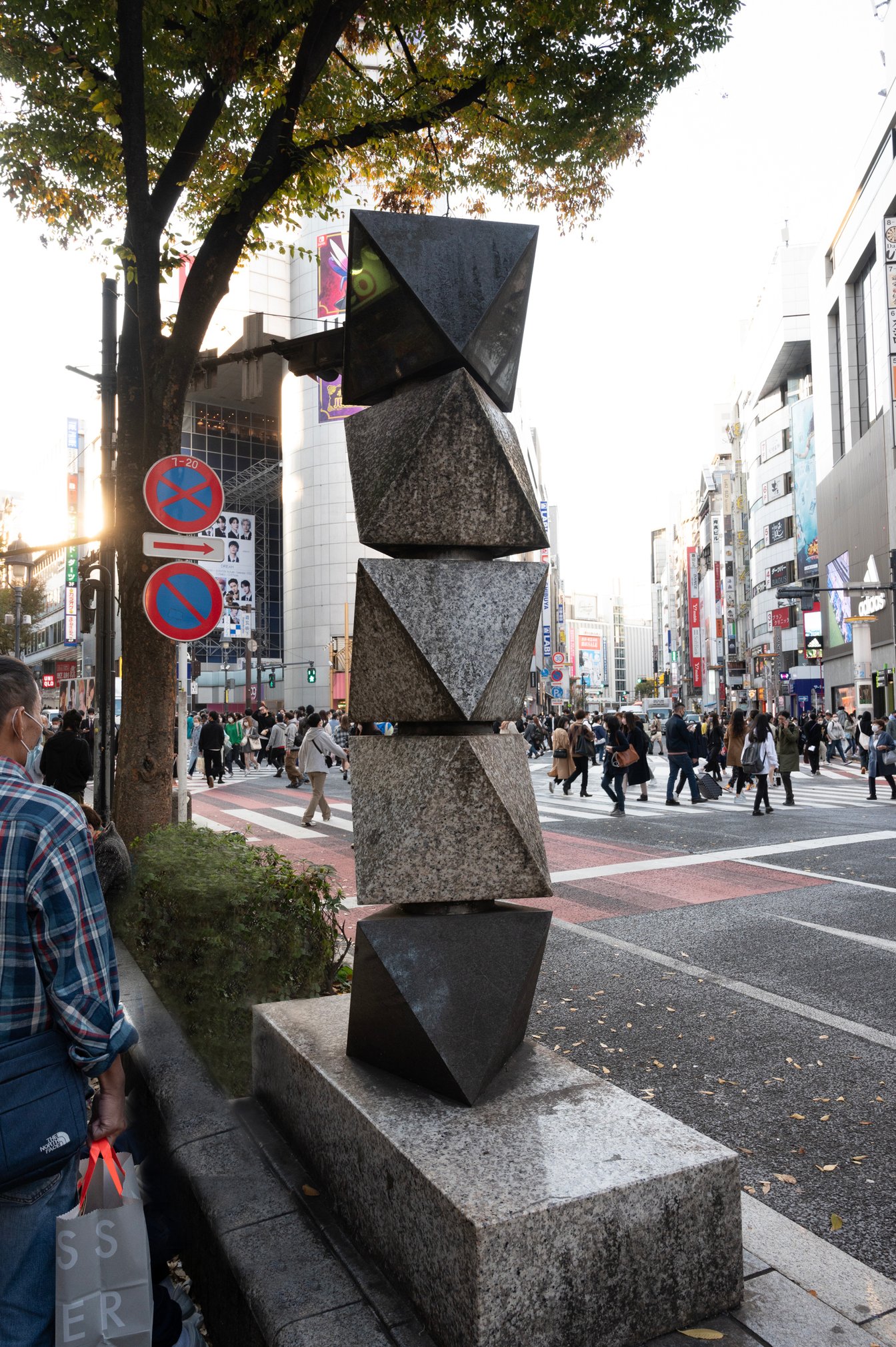 5つの四角い立体ブロックを積み重ねたこちらの作品は、古島実氏が制作。渋谷の中でも人通りの多い渋谷109の前に佇んでいて、1991年から、変わりゆく渋谷の街を見守っています。「風見塔」という名前を知ると、風になびいて揺れているようにも見えますね。