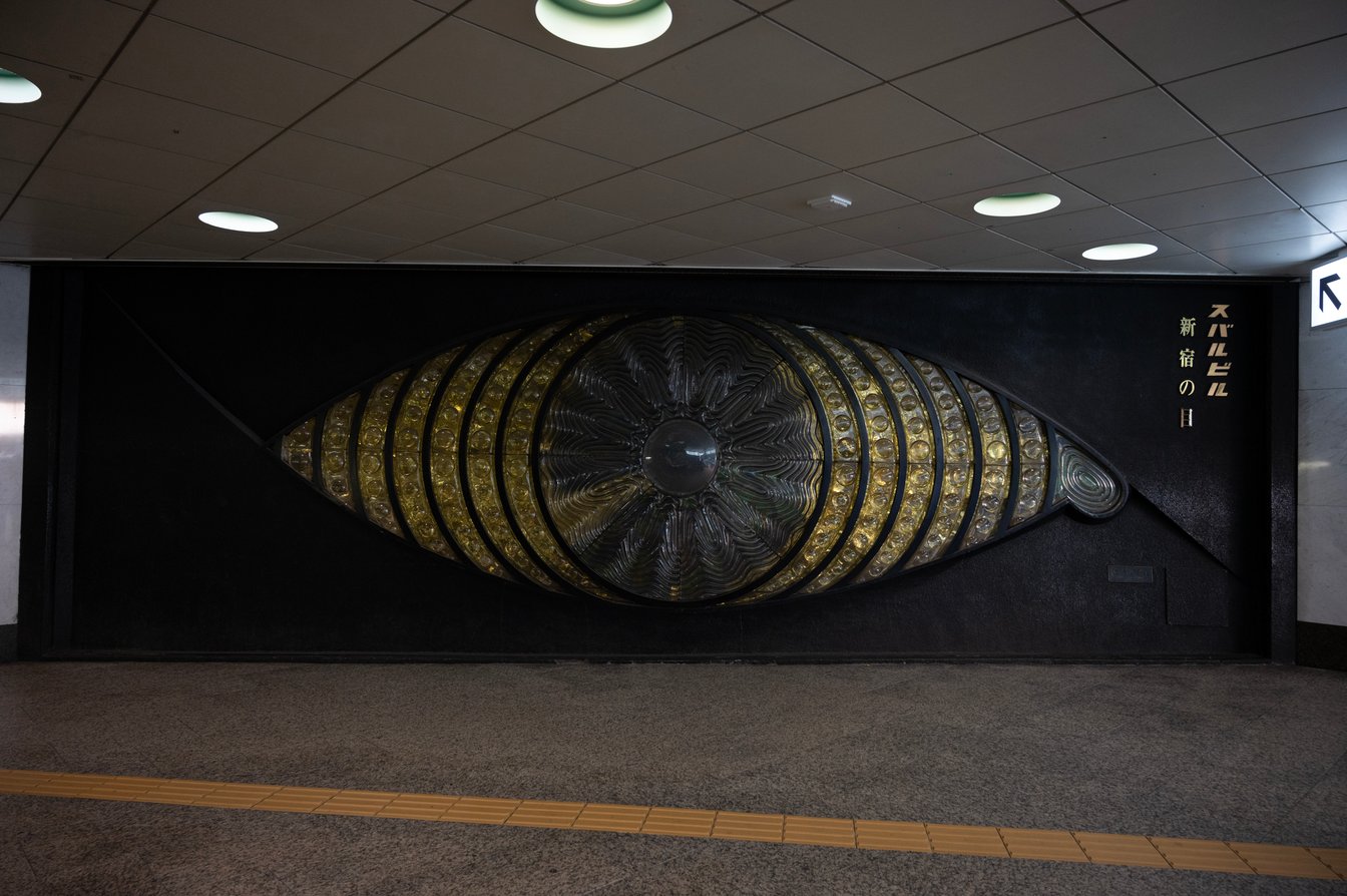 新宿西口の地下広場で街行く人を見つめる、高さ3メートル幅10メートルの大きな目。作者の宮下芳子氏は、この作品を「時の流れ、思想の動き、現代のあらゆるものを見つめる“目”二十一世紀に伝える歴史の“目”…もしかすると遠く宇宙を見つめる“目”かも知れない」と解説しています。どこか温かみを感じる印象的な瞳は、前を通る人々を見守っているかのようですね。