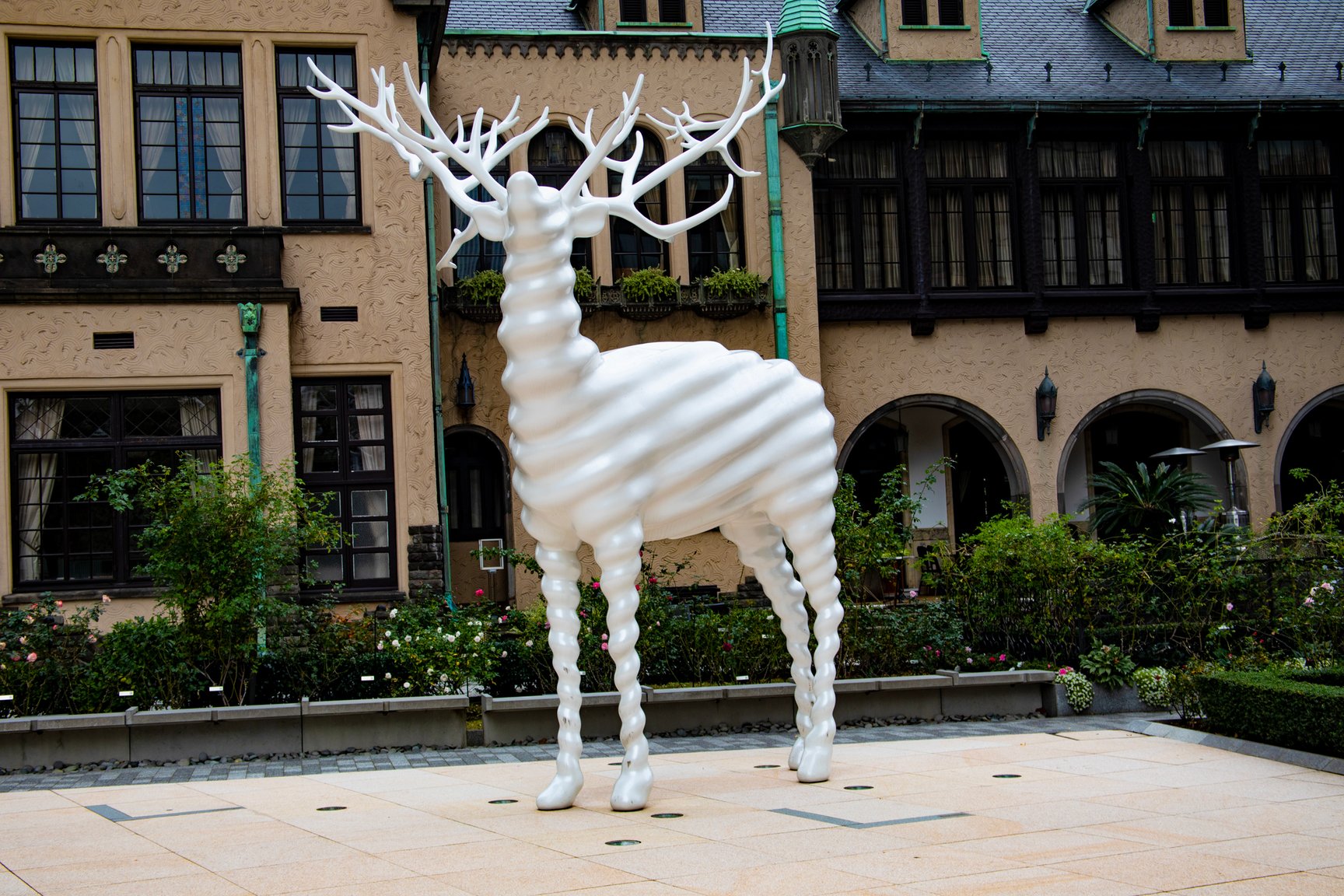 東京ガーデンテラス紀尾井町では、鹿の剥製を3Dスキャンして制作された名和晃平氏の彫刻作品「White Deer」をはじめ、8点の作品を展開。
