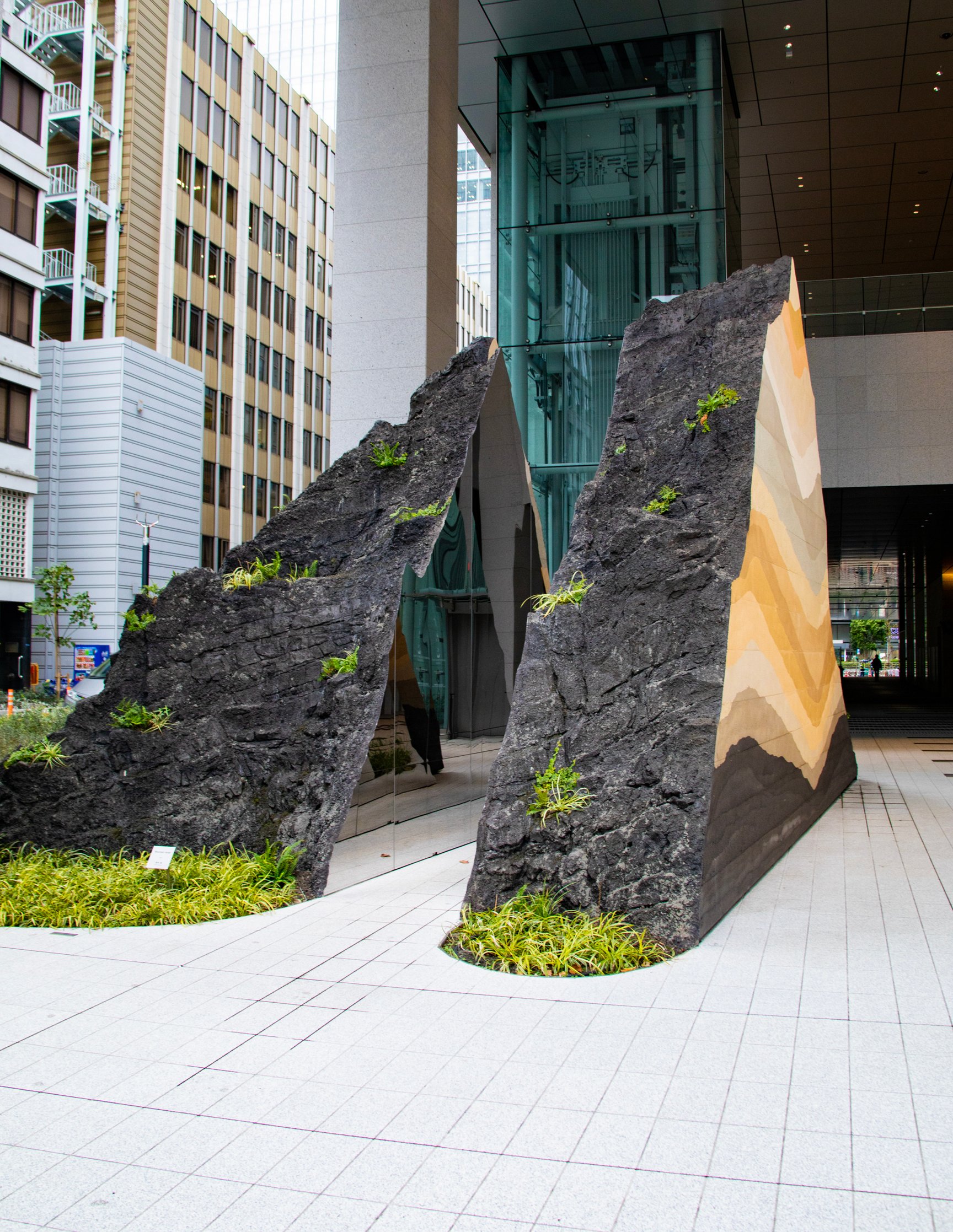 東京ミッドタウン赤坂は、アーティスト11人が制作した15点の作品を展開。安田侃氏による彫刻作品や、高須賀昌志氏が伝統的な文様や紋の形を用いて制作したブランコやすべり台といった遊具など、さまざまなアートを楽しむことができます。