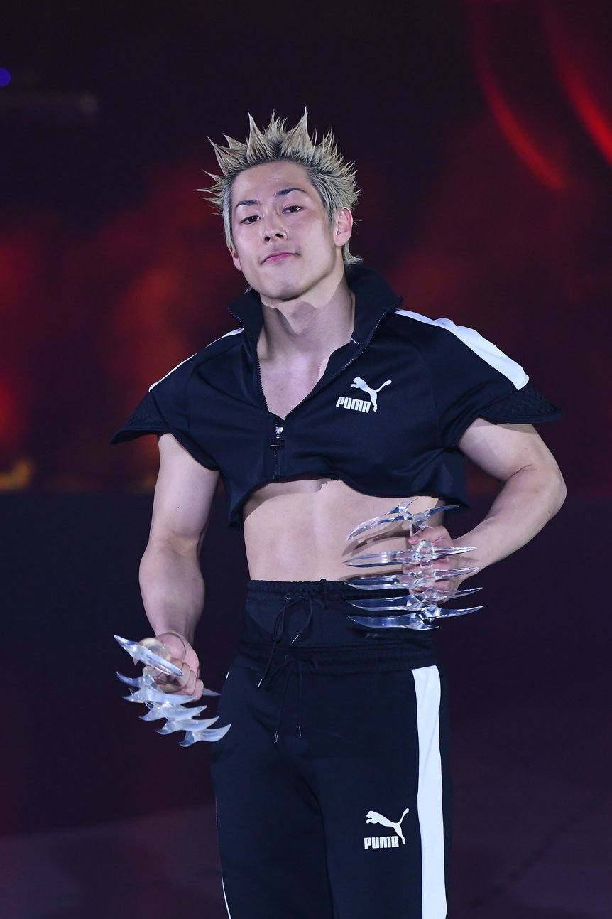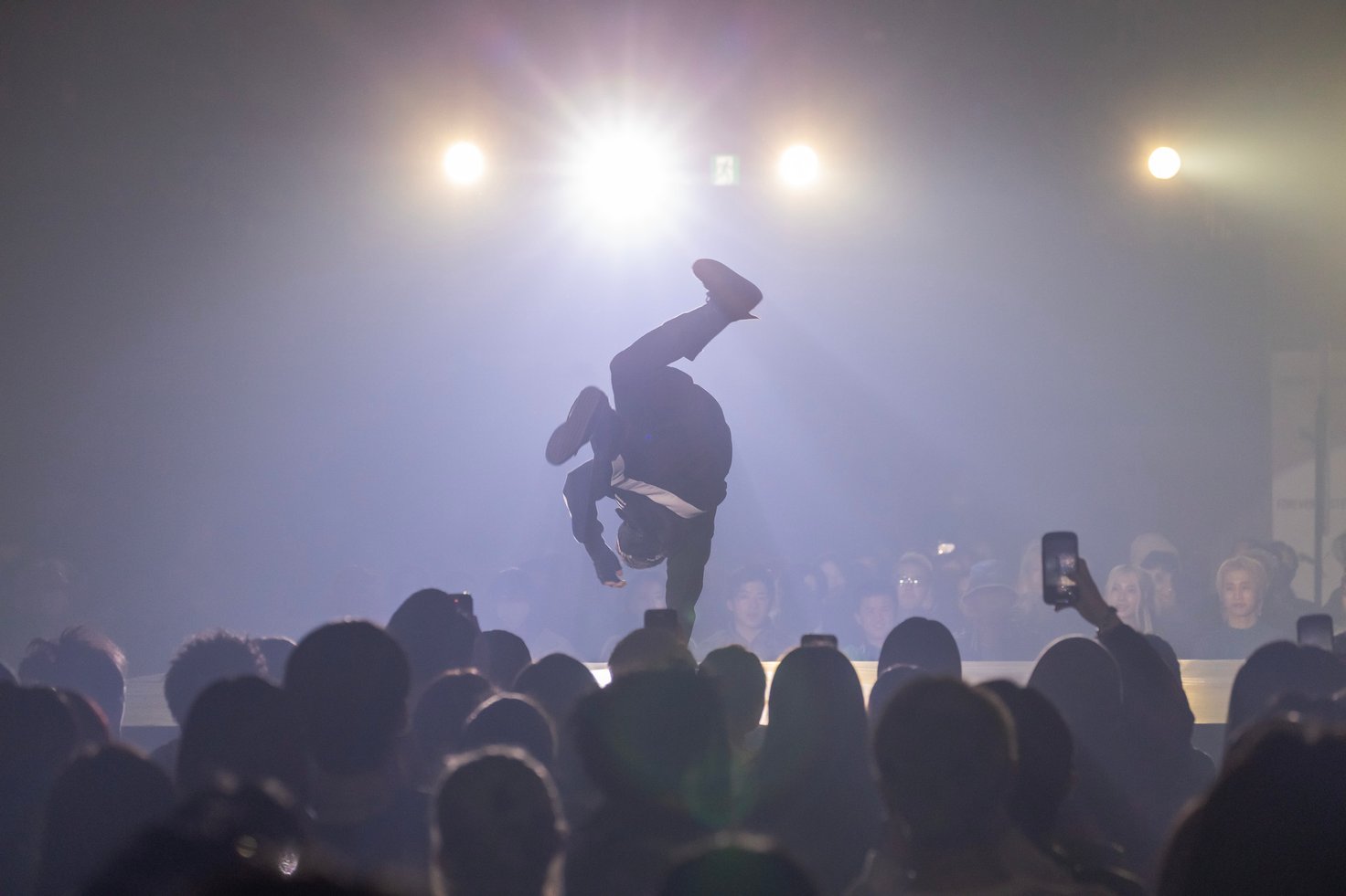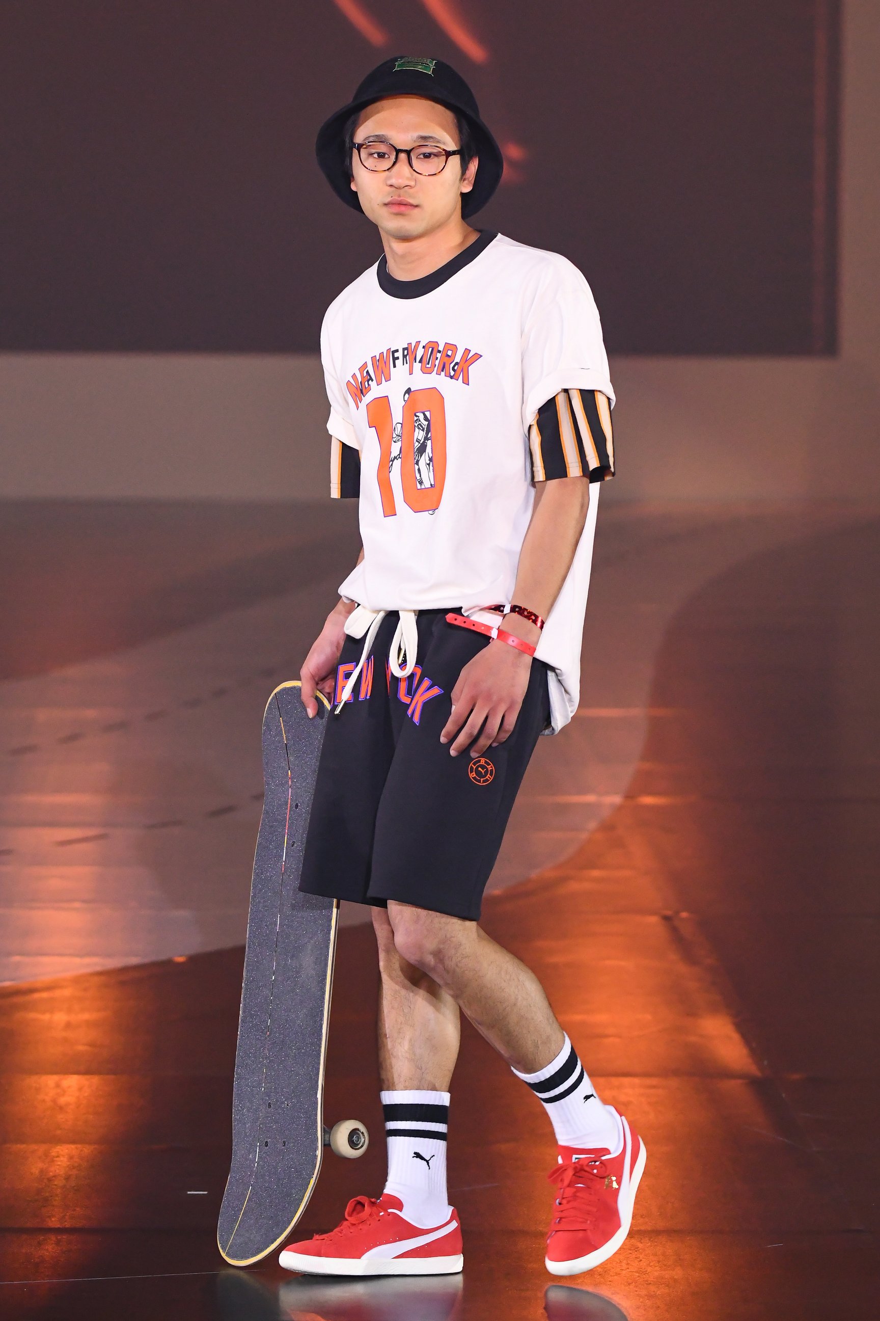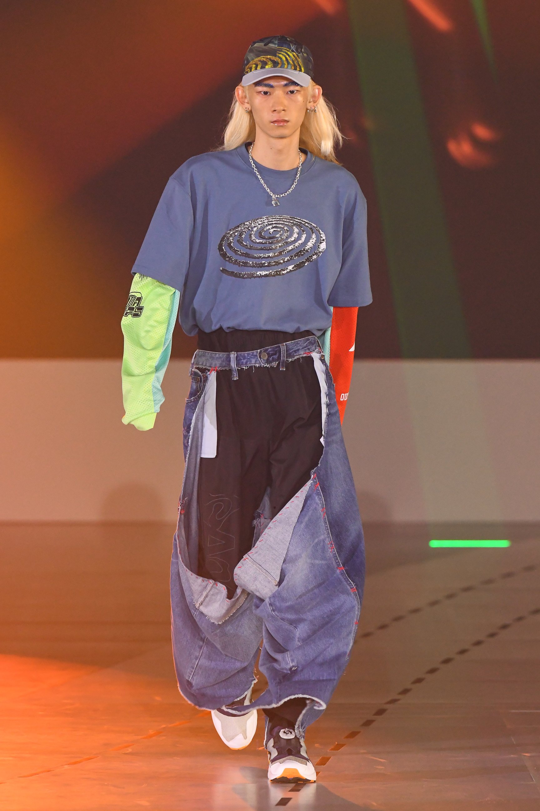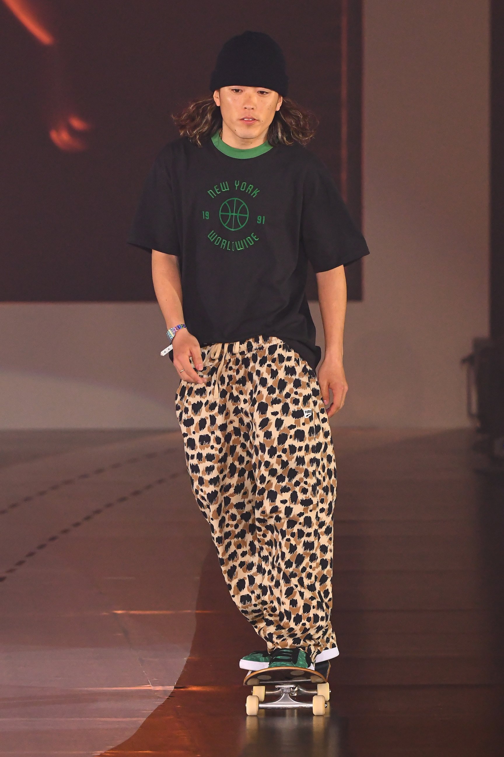 BGMはラッパーのkZmが率いるレーベルのDe-void*が務め、スケーターの戸倉万汰廊、有馬昂希、根岸空がランウェイ上でスケートボードを乗りこなす演出で会場を魅了した。