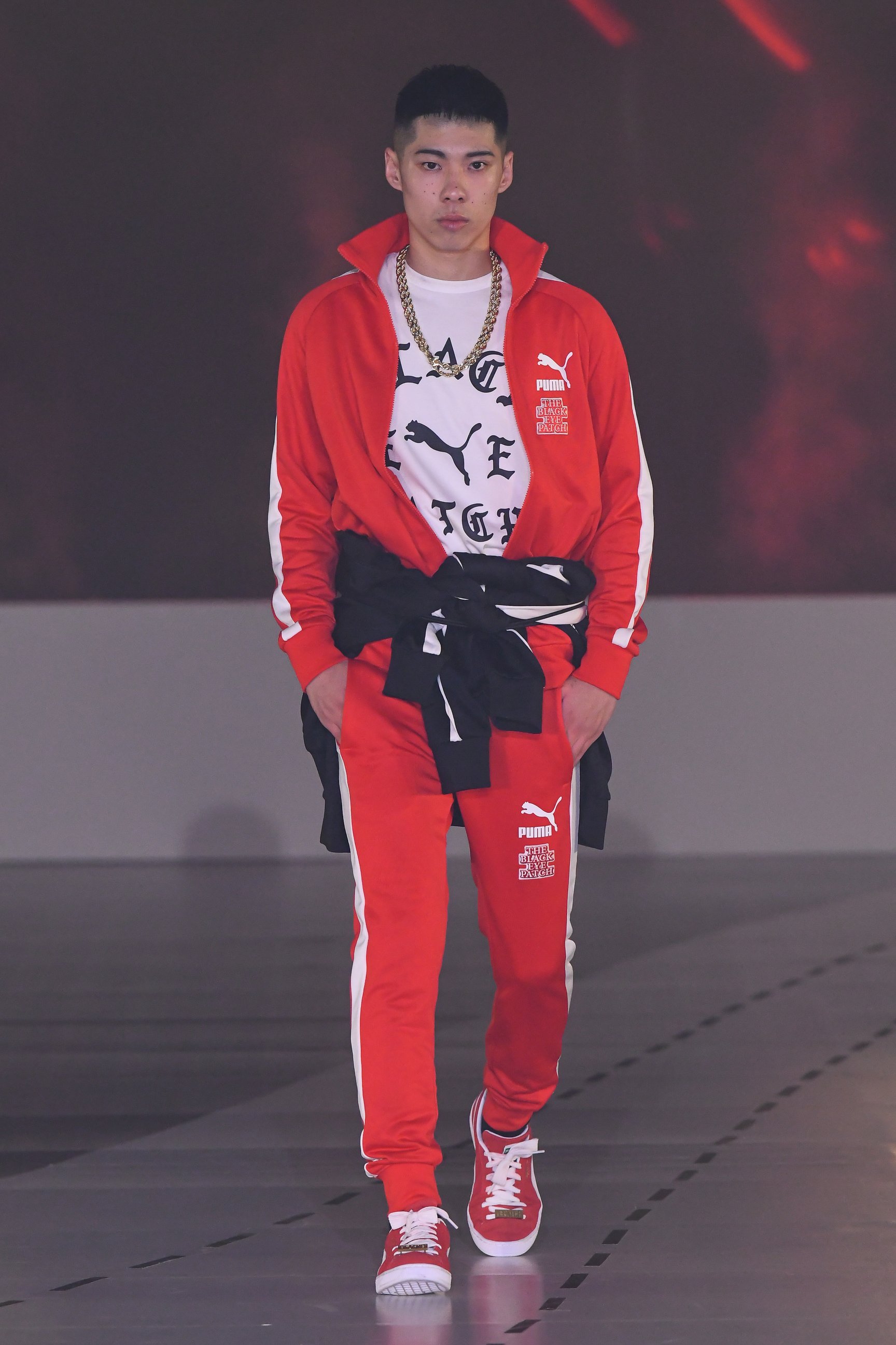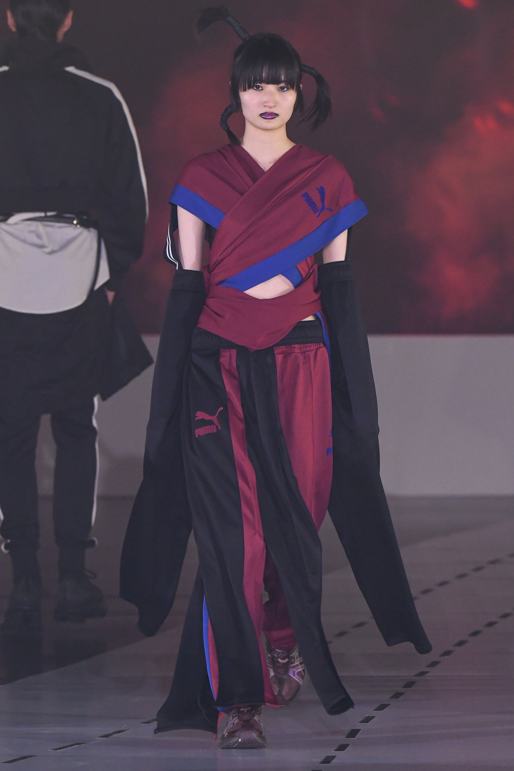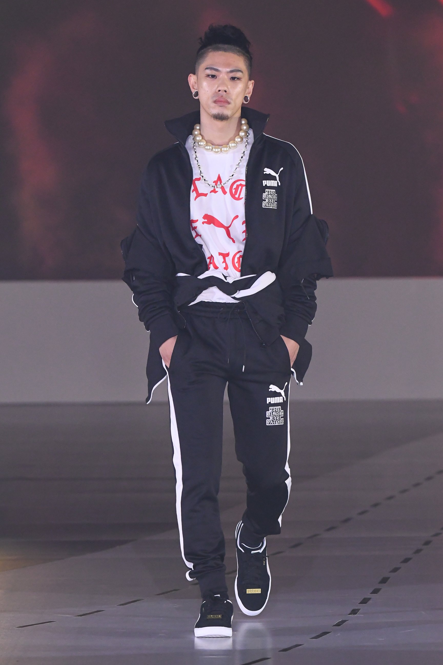 ウェアでは、“過去”として「日本のクラシック」をテーマに掲げ、「和」を感じさせるスタイリングを披露。プーマのトラックスーツ「ティーセブン(T7)」をリメイクして、侍や忍者などをイメージしたルックに仕上げた。シューズは、金箔でアッパーを覆った非売品のクライド(Clyde)や、パリ発「コシェ(KOCHÉ)」とのコラボによる「ニトロ ランニングシューズ」などが登場。そのほか、「ブラックアイパッチ(BlackEyePatch)」とコラボし、プーマロゴを組み合わせたグラフィックが特徴のアイテムが登場したほか、「アンリアレイジ(ANREALAGE)」とのコラボウェア、トラックスーツのティーセブンのデザインをスカジャンに落とし込んだ新コレクション「スカ コレクション メイド イン ジャパン(SKA COLLECTION Made in Japan)」などを発表した。