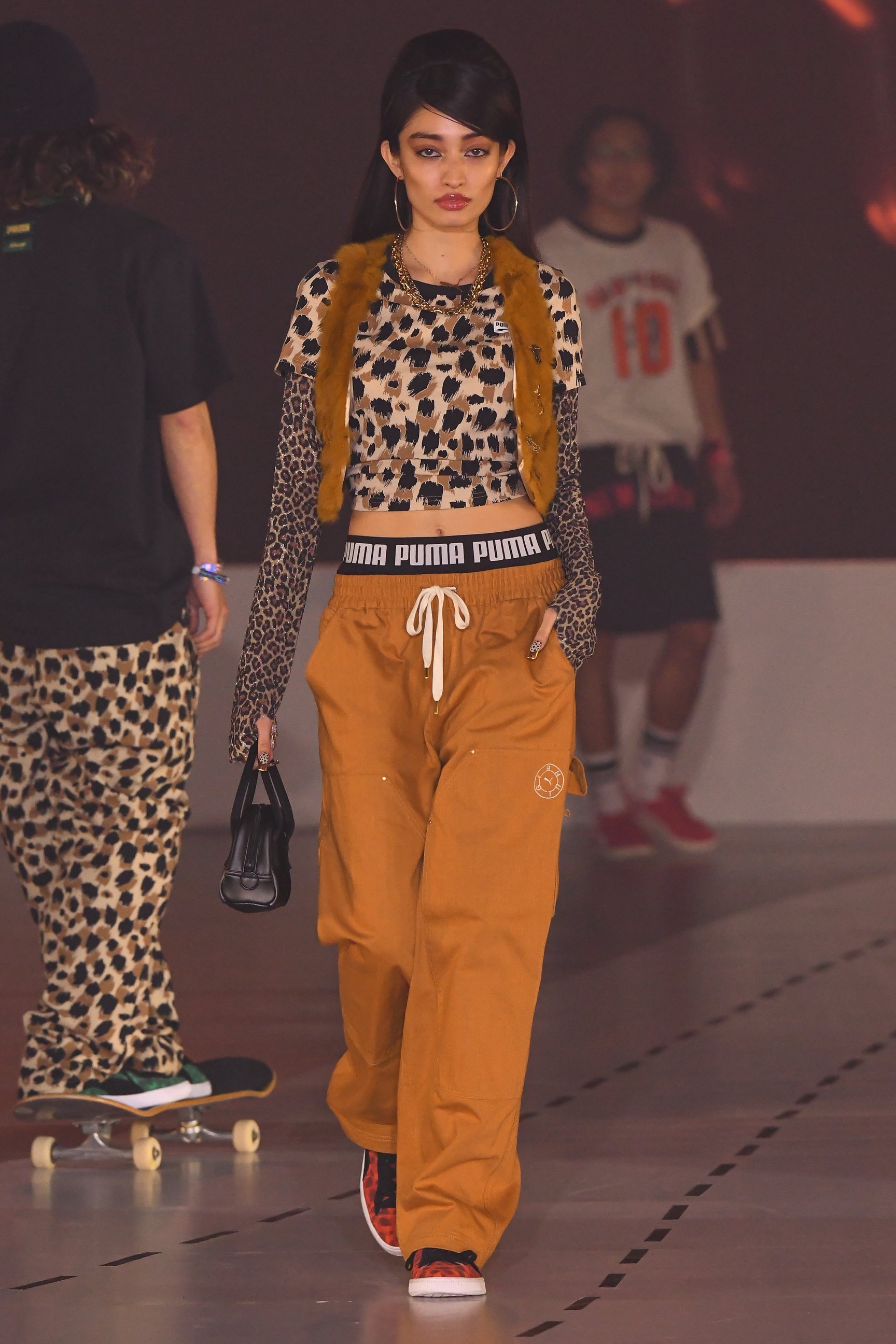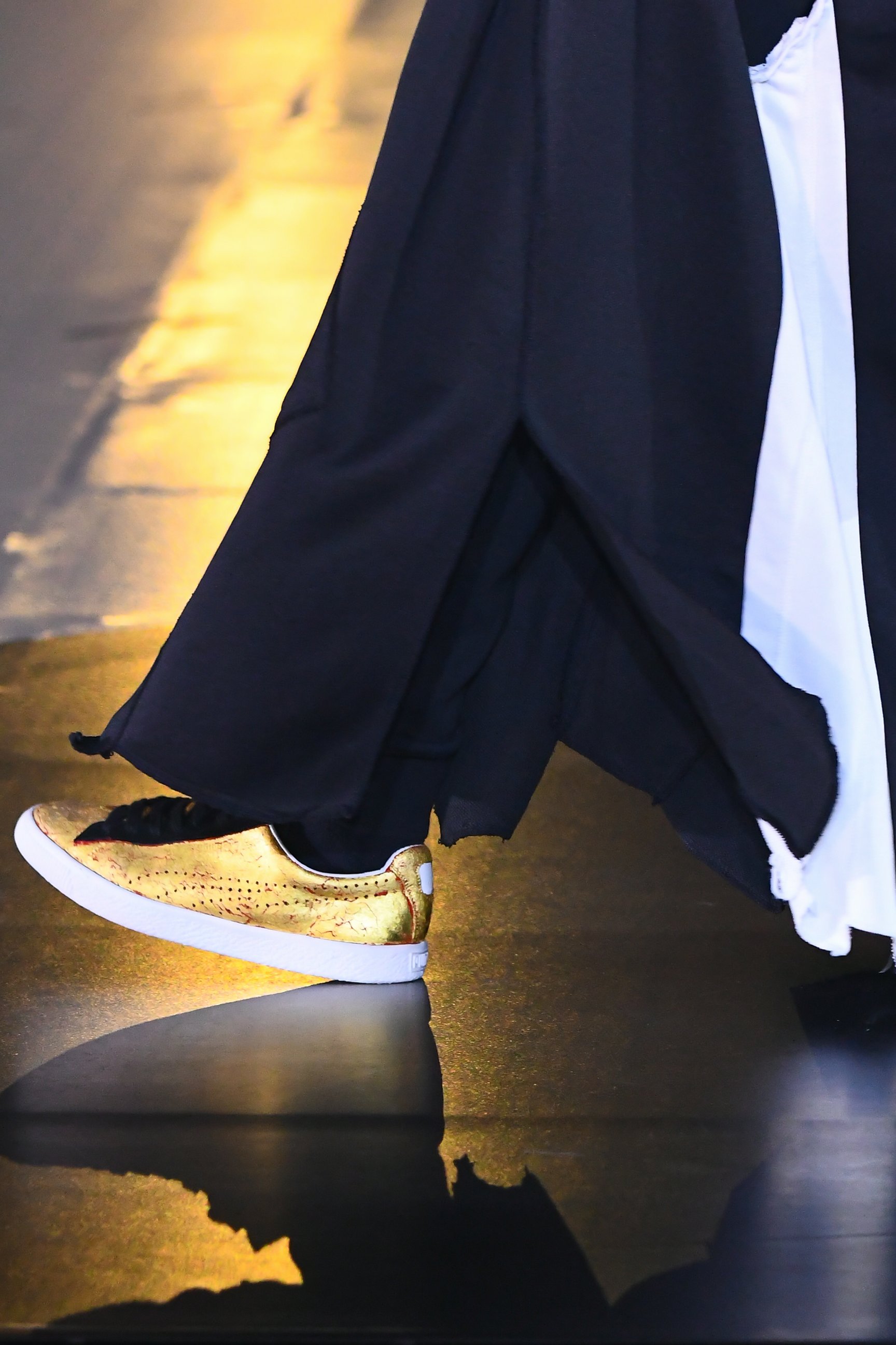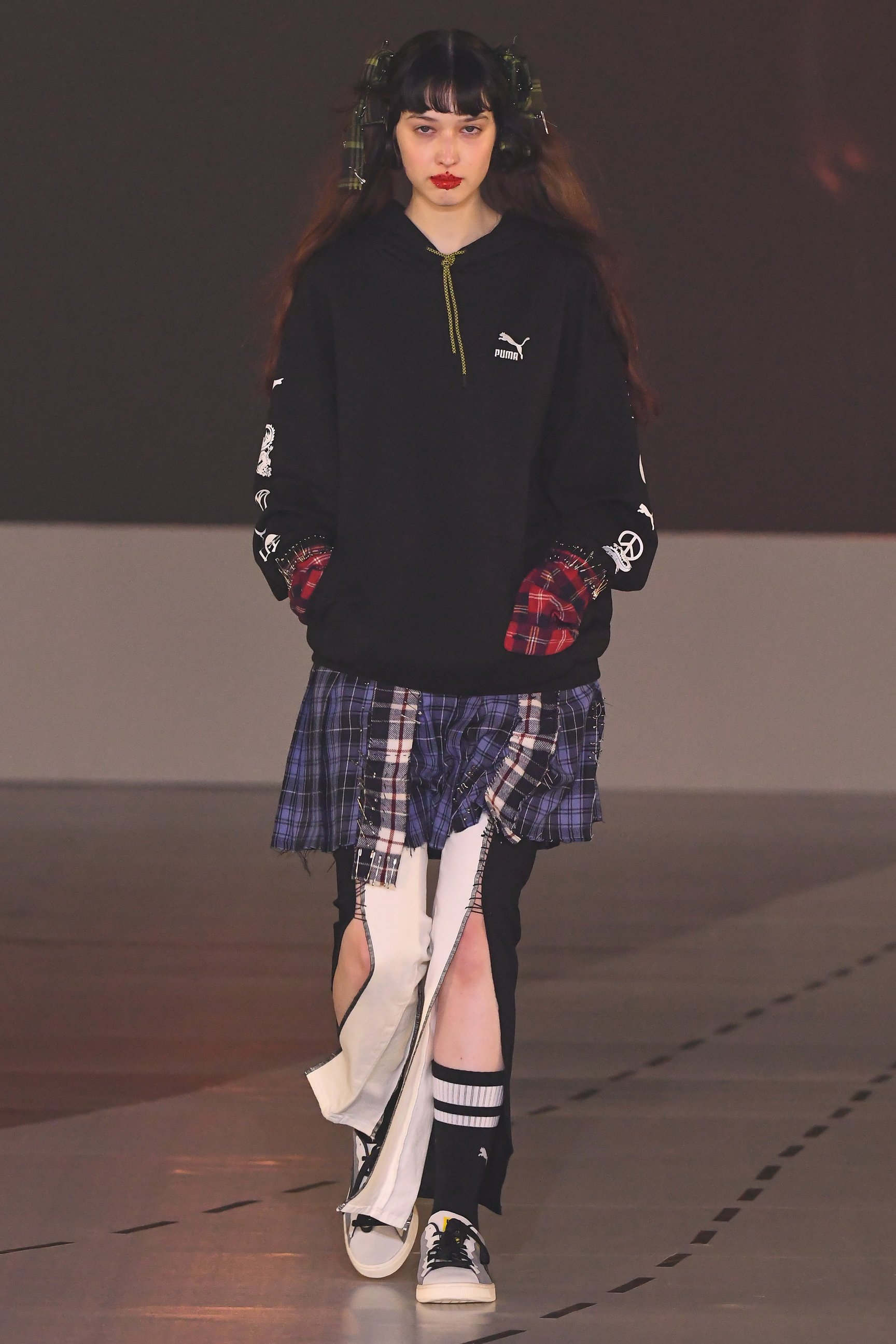 ウェアでは、“過去”として「日本のクラシック」をテーマに掲げ、「和」を感じさせるスタイリングを披露。プーマのトラックスーツ「ティーセブン(T7)」をリメイクして、侍や忍者などをイメージしたルックに仕上げた。シューズは、金箔でアッパーを覆った非売品のクライド(Clyde)や、パリ発「コシェ(KOCHÉ)」とのコラボによる「ニトロ ランニングシューズ」などが登場。そのほか、「ブラックアイパッチ(BlackEyePatch)」とコラボし、プーマロゴを組み合わせたグラフィックが特徴のアイテムが登場したほか、「アンリアレイジ(ANREALAGE)」とのコラボウェア、トラックスーツのティーセブンのデザインをスカジャンに落とし込んだ新コレクション「スカ コレクション メイド イン ジャパン(SKA COLLECTION Made in Japan)」などを発表した。
