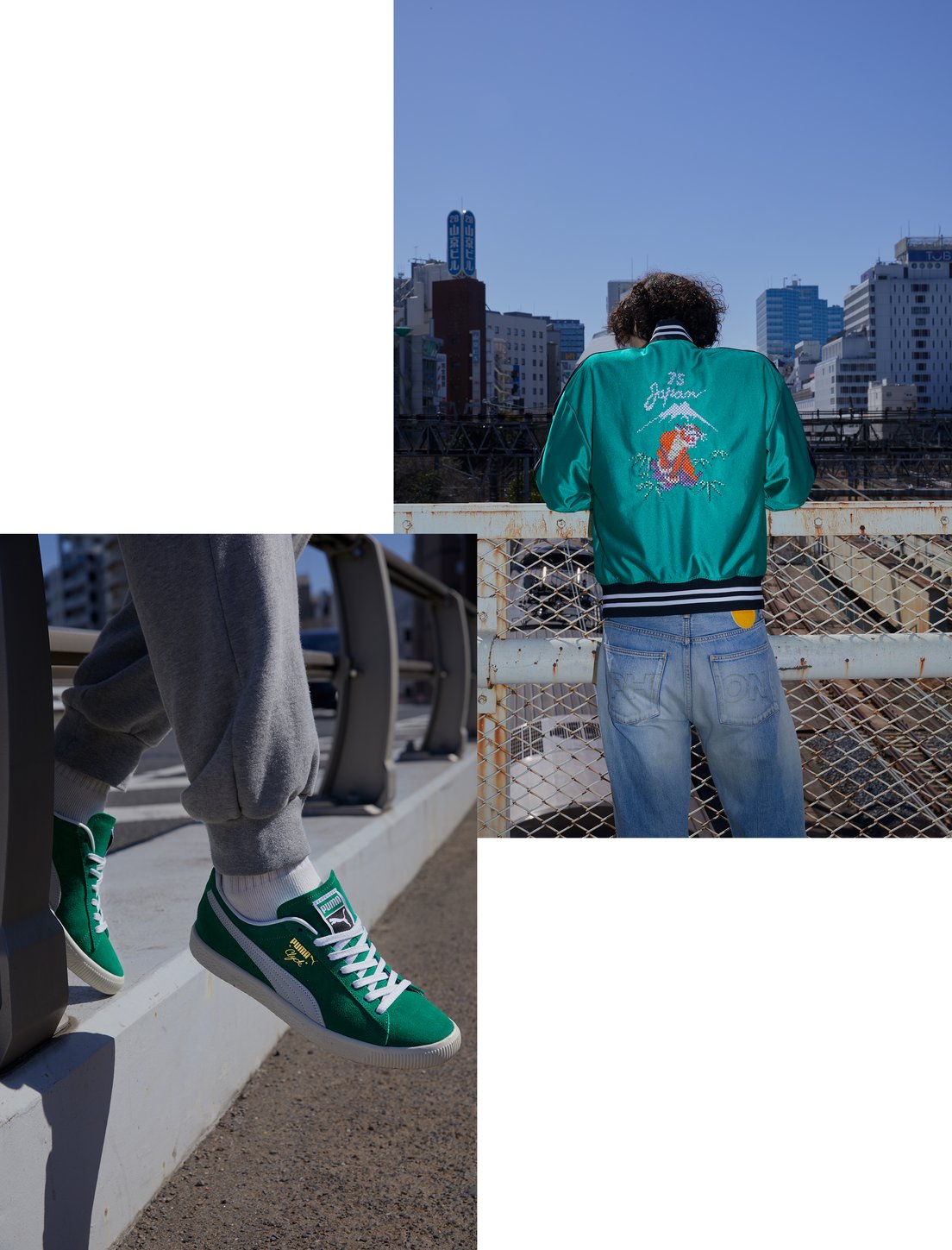 1960年代、SUEDEの前身モデルとなるスエード素材のトレーニングシューズが誕生。フルスエードのアッパーとモダンなディテールが特徴。1980年代には、ブレイクダンサーやスケートボーダーたちがこぞって着用し、ストリートシーンで爆発的人気に。ファッション、音楽、ストリート、ポップカルチャーといった多様なカルチャーの中心で支持され続ける不朽の名作。