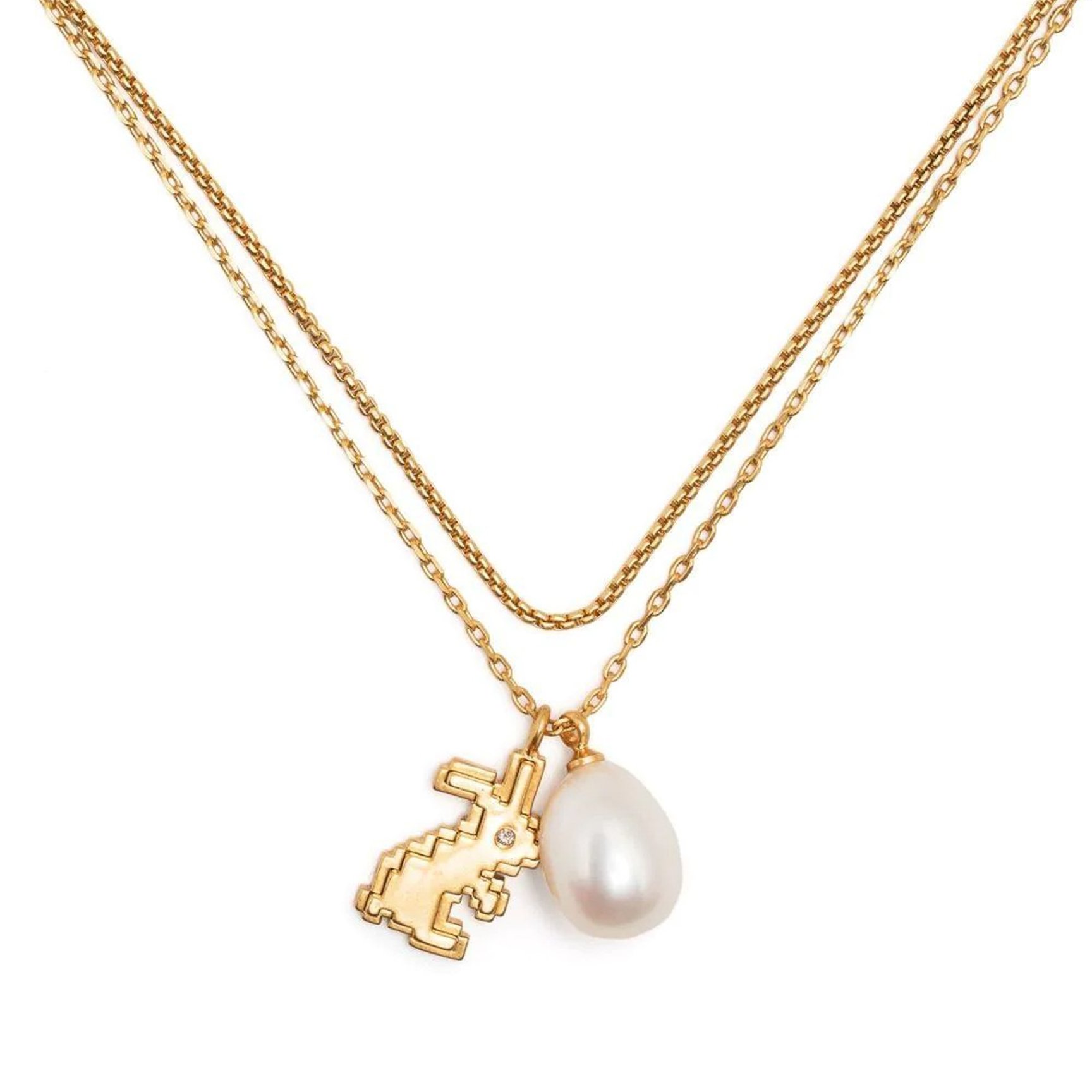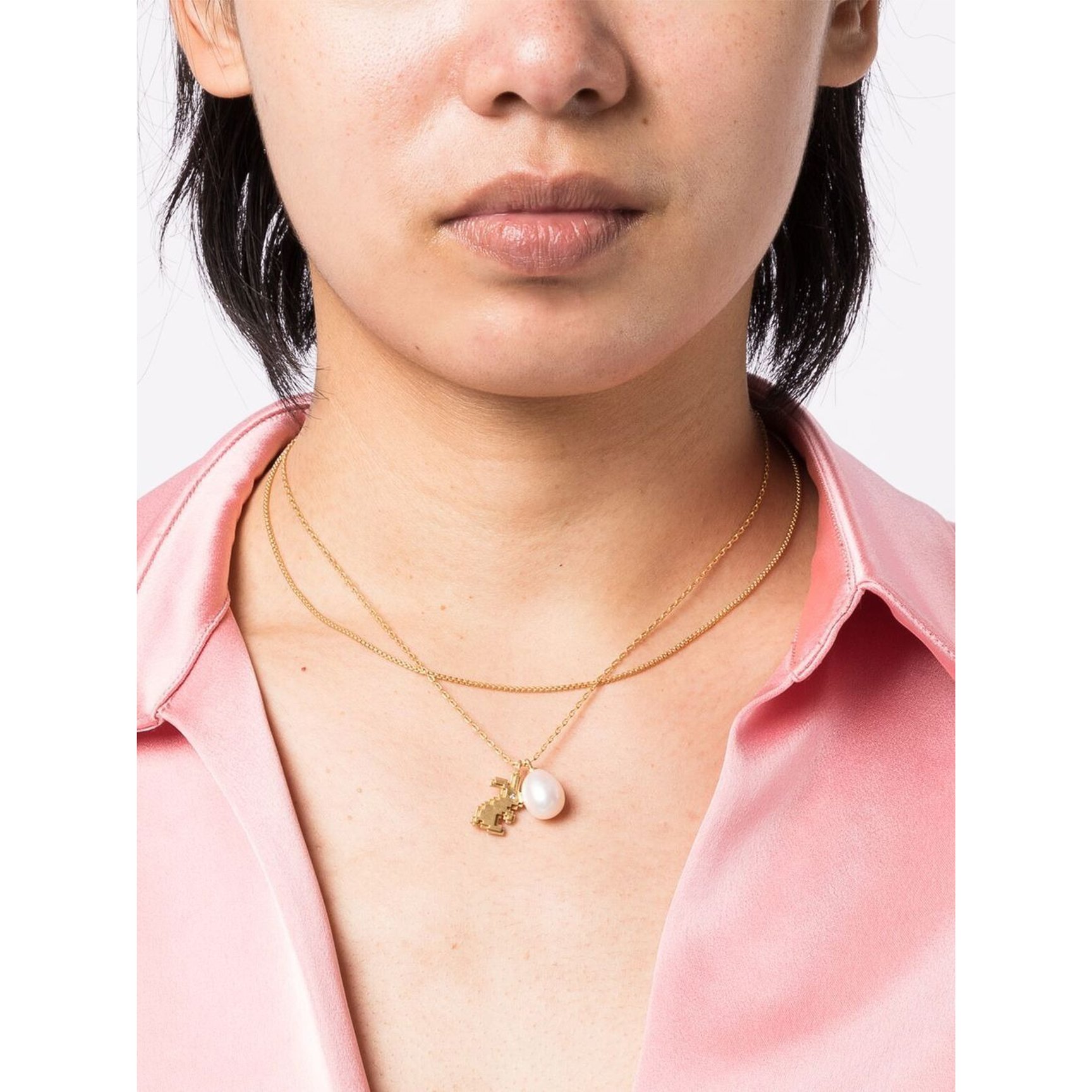 二重になったチェーンと、ピクセルアートのようなラビットペンダントが個性的な「トリー バーチ(TORY BURCH)」のネックレス。トップには大き目のパールが寄り添い、可愛いだけではない気品ある印象に仕上げています。