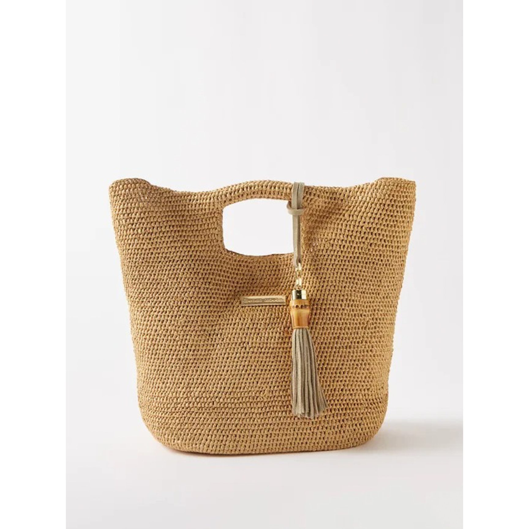 JIMMY CHOO Bon Bon beaded crochet-raffia bucket bag ¥194,000 輸入関税およびその他諸税込み