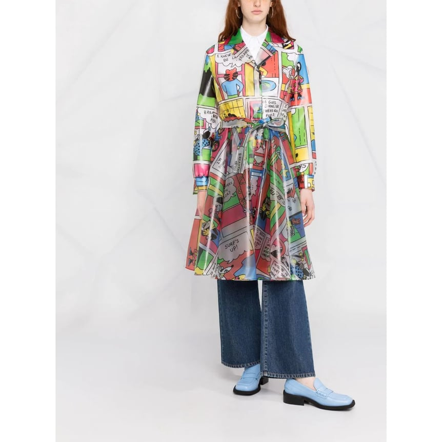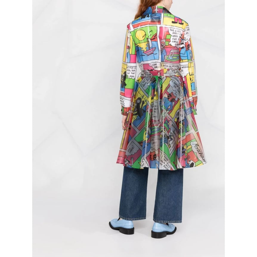 個性派さんにおすすめしたいのが、コミック柄が目を引く「モスキーノ(MOSCHINO)」のコート。カラフルかつキュートな絵柄を、ベーシックなトレンチシェイプをベースにしたクリアコートにのせた存在感抜群なデザインです。