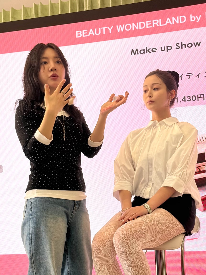 会場内にはRainmakersが展開する全14ブランドが集結。ウォンジョンヨをはじめ、ふくれなプロデュースの「シピシピ(CipiCipi)」、かわにしみきプロデュースの「ミュアイス(muice)」、柏木由紀プロデュースの「ユーピンク(upink)」などの既存ブランドに加え、美容師監修のダメージヘアケア「アニュミー(anummy)」、本田真凜プロデュースの「ルアリン(Luarine)」といったローンチしたばかりのブランドも並んだ。定番アイテムや発売前の新作など、これまで日本でしか手に取ることができなかったコスメを体験できる機会となった。