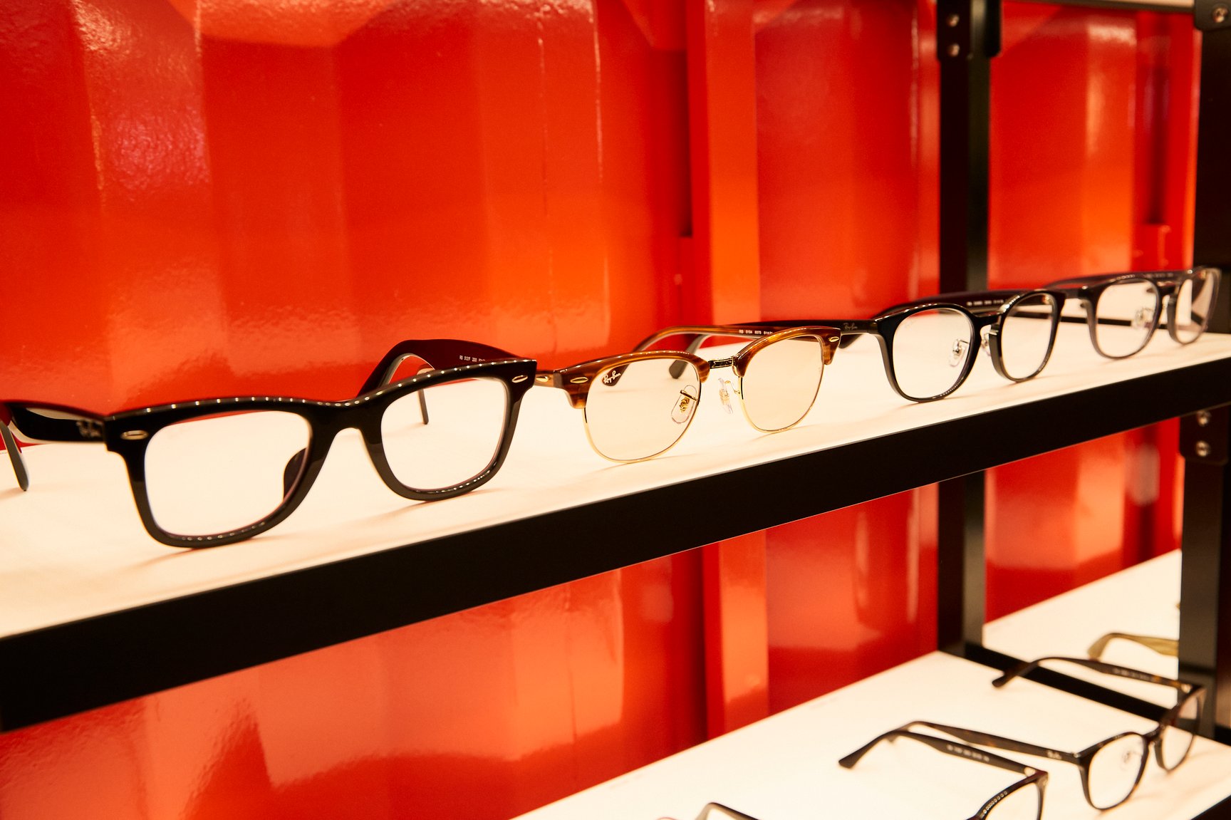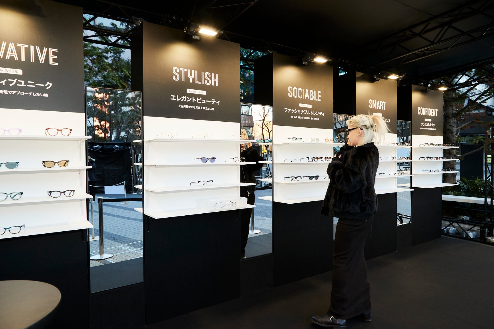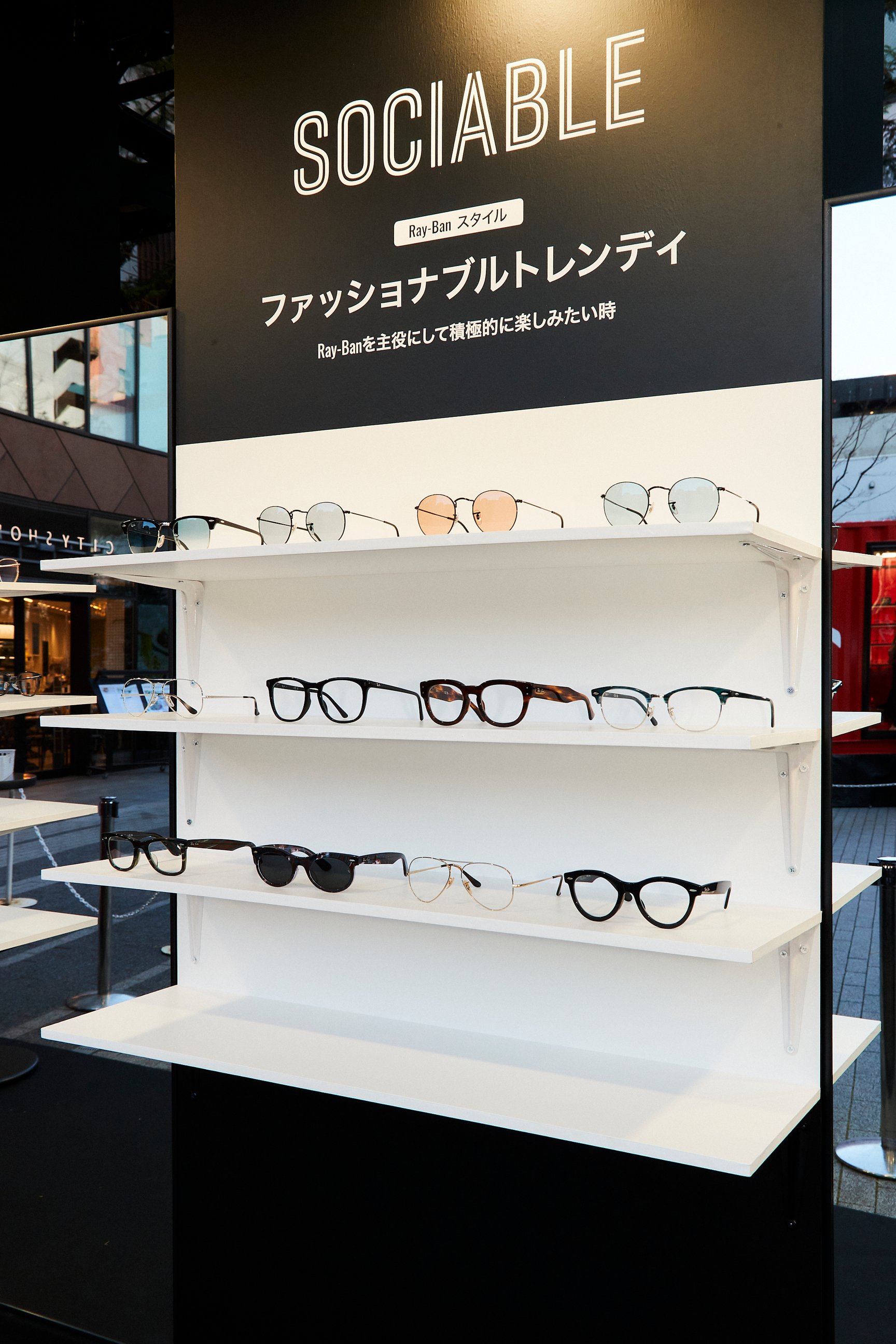会場には、5つのテイスト別にカテゴライズしたアイウェアが整然と並べられた。「エレガントビューティ」「クラシカルモダン」といったキーワードから、“なりたい自分”をイメージすることができ、スタイリストの小山田早織監修によるコンテンツが、理想の自分へとナビゲートしてくれる。広場中央には、レイバンを象徴するレッドカラーのコンテナが設置され、「トランジションズ®(Transitions ®)」のテクノロジーを体験したり、「フォトマティック(Photomatic)」によるセルフィーを楽しんだりと、ブランドの世界観に満ちた特別な空間を堪能できる。