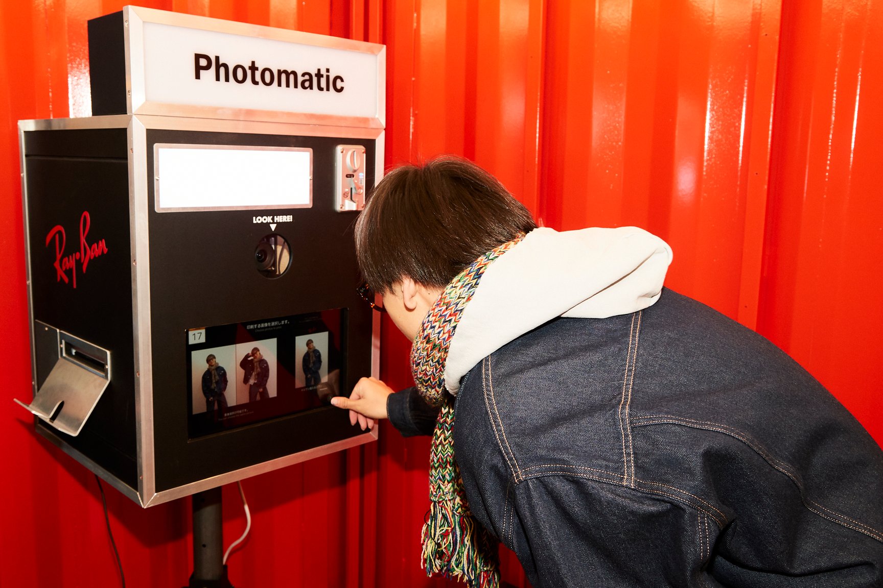 会場では一人ひとりがなりたい「ジブン」像に合わせて、気になるアイウェアを手に取り、普段とはまた違ったアプローチで理想の一本を探す。2ヶ所に設置されたフォトスポットにはそれぞれ、半身と全身が撮影できるPhotomaticがスタンバイ。いずれもレイバンのオリジナルフレームで、新しいジブンと出会えた記念すべき一枚を形に残すことができる。