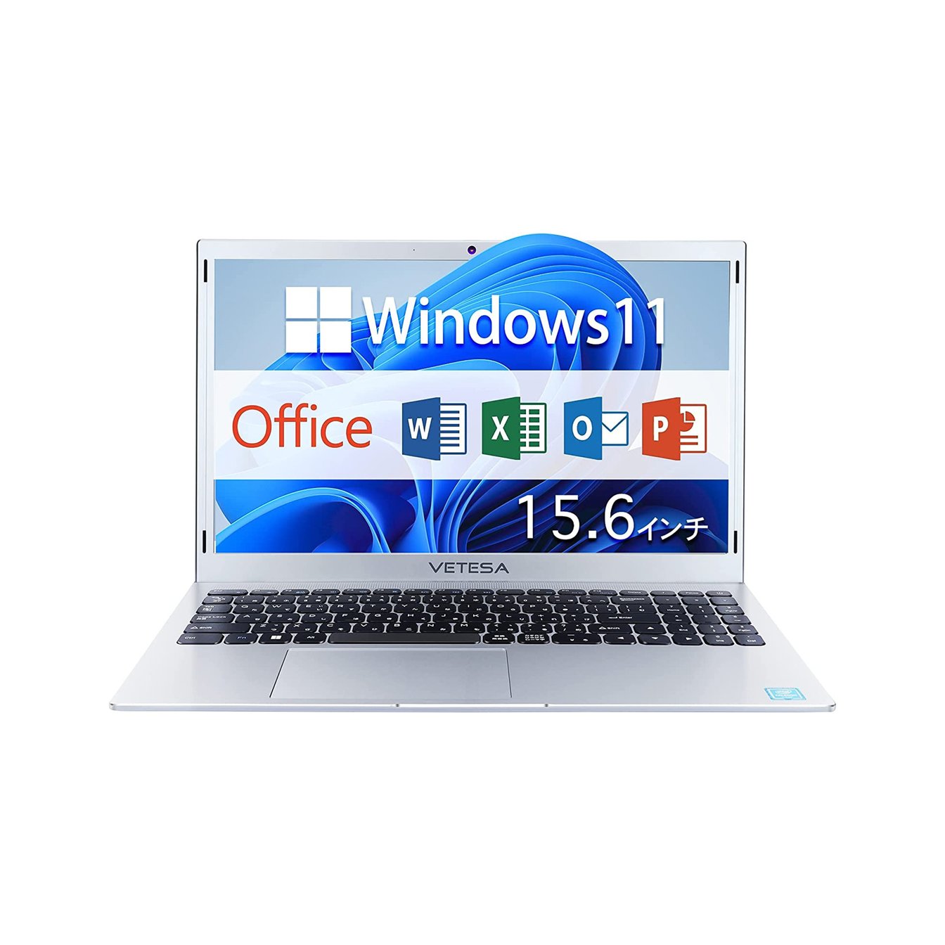 最後にご紹介するのは、大き目のディスプレイでエクセルやパワーポイントの作成もしやすい「ヴェテサ(VETESA)」のWindows11/Microsoft Office搭載モデル。レポートや資料の作成も十分に叶うノートPCは、すっきりとしたフォルムとスペックで5万円以下という驚きの価格を実現しています。
