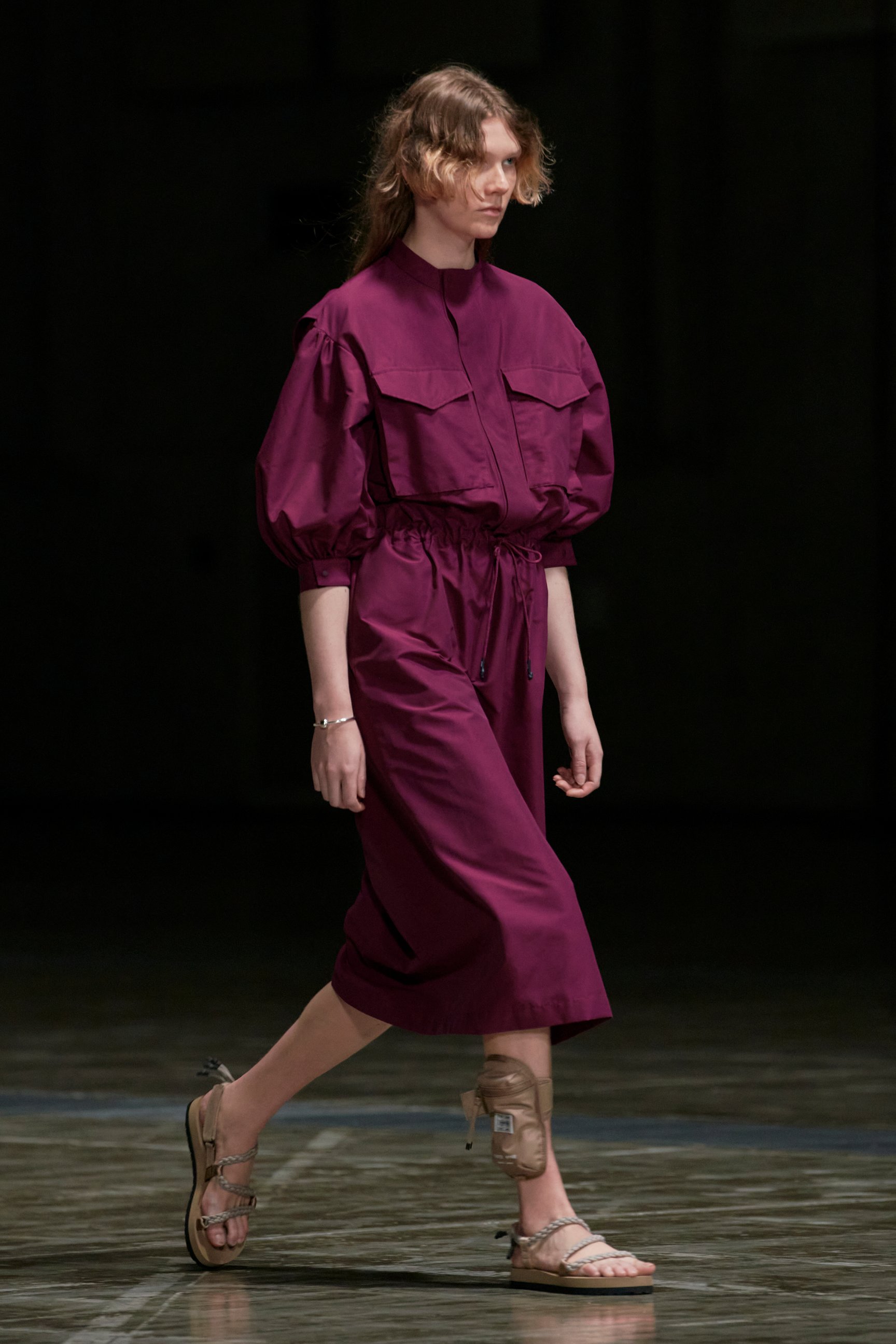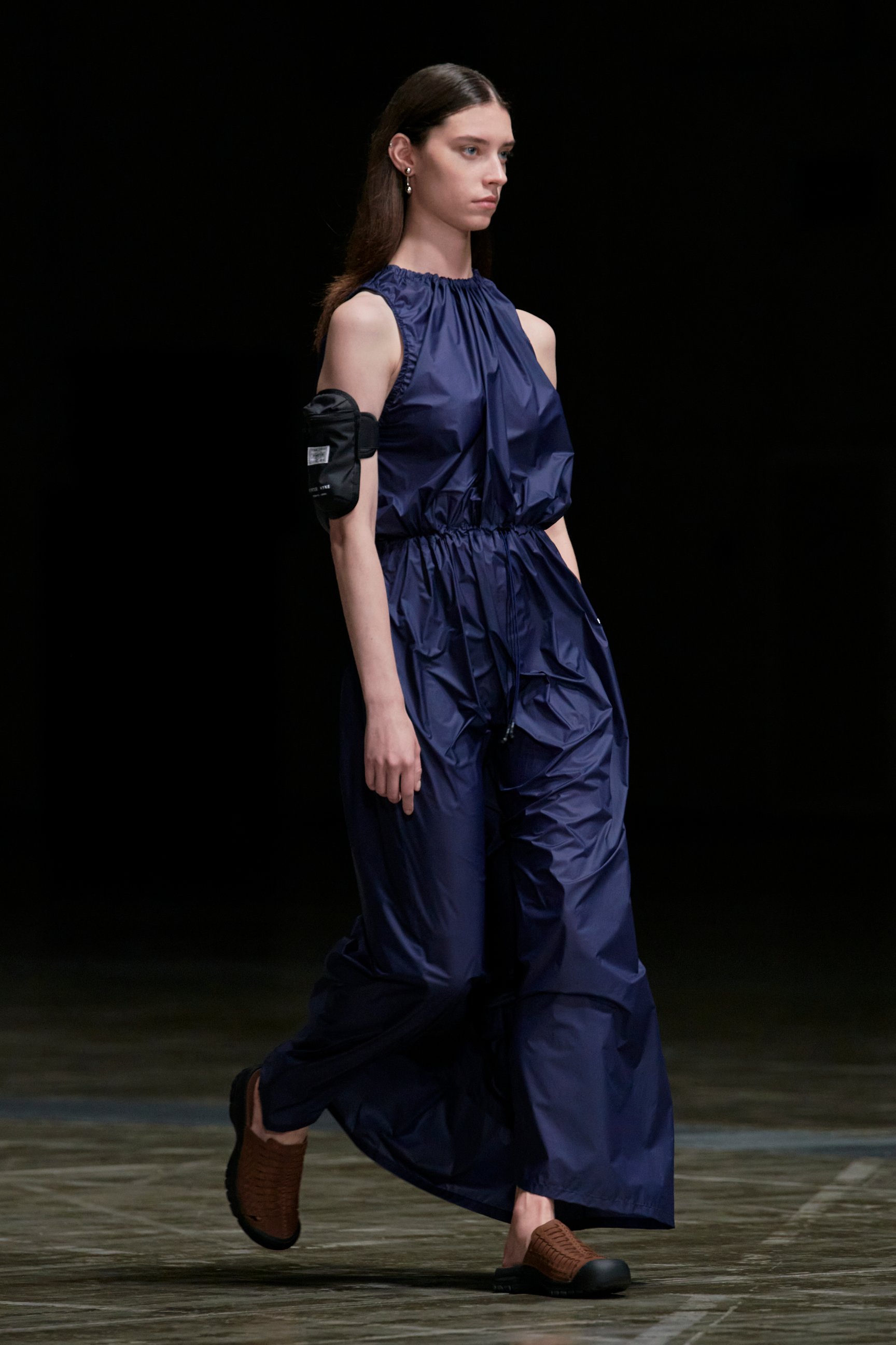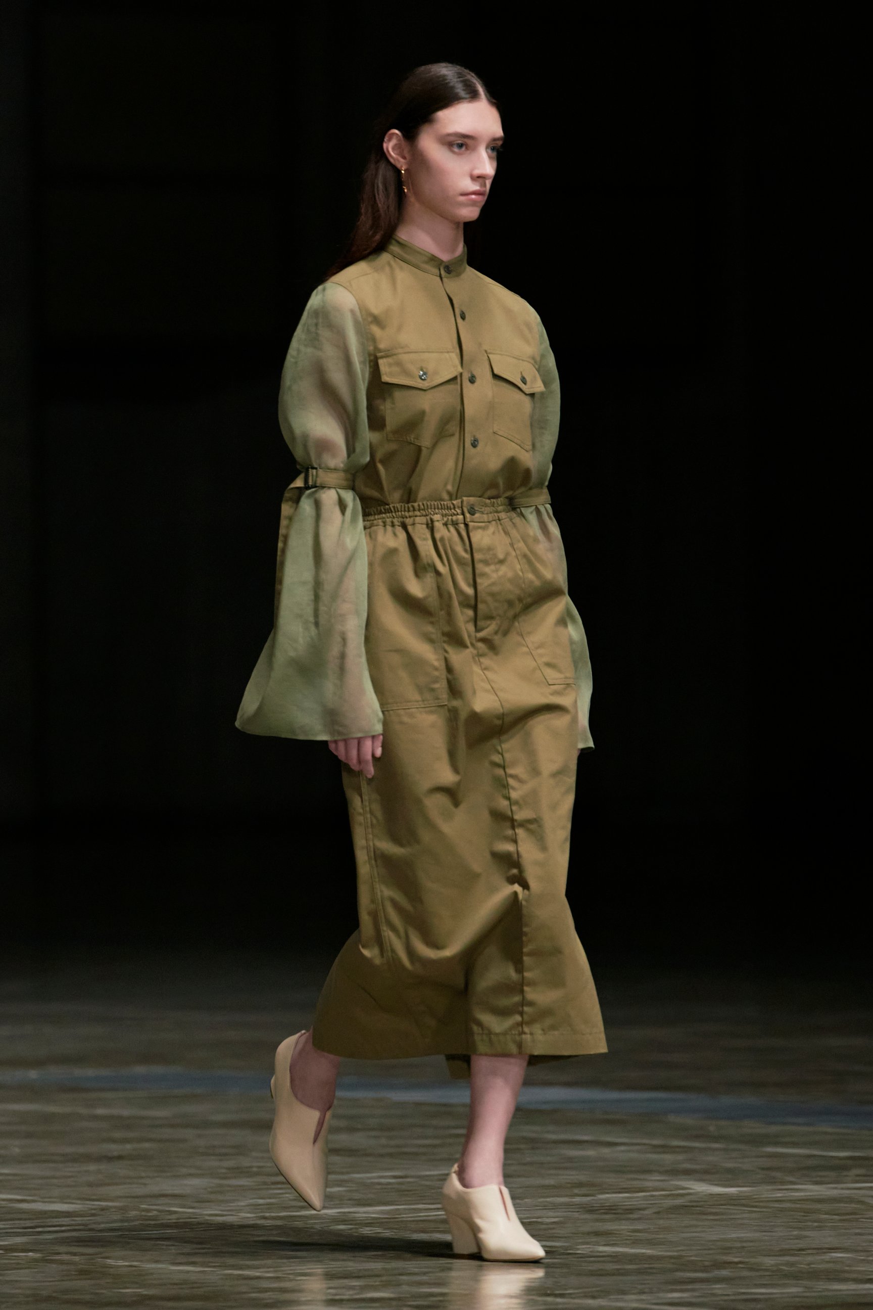 コレクションでは、イギリス陸軍のセーラーパンツに着想を得たドレスや、ミリタリーアイテムをベースに製作したモッズコートなどのほか、新たなコラボレーションとして「キーン(KEEN)」とのアイテムを発表。キーンのアイコンとも言える「トゥ・プロテクション」を採用し、編み込みアッパーを組み合わせた。