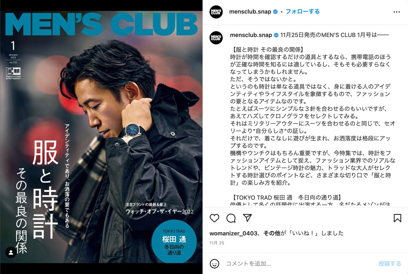 ・ファッション雑誌「メンズクラブ」が、2023年3月10日発売の「2023年春号」をもって、発行回数を年10回から年4回に変更する。