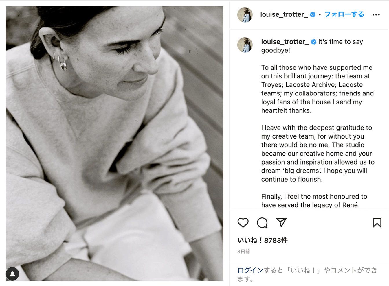 ・「ラコステ」のクリエティブディレクター ルイーズ・トロッターが、2022年春夏コレクションを最後に同職を退任する。