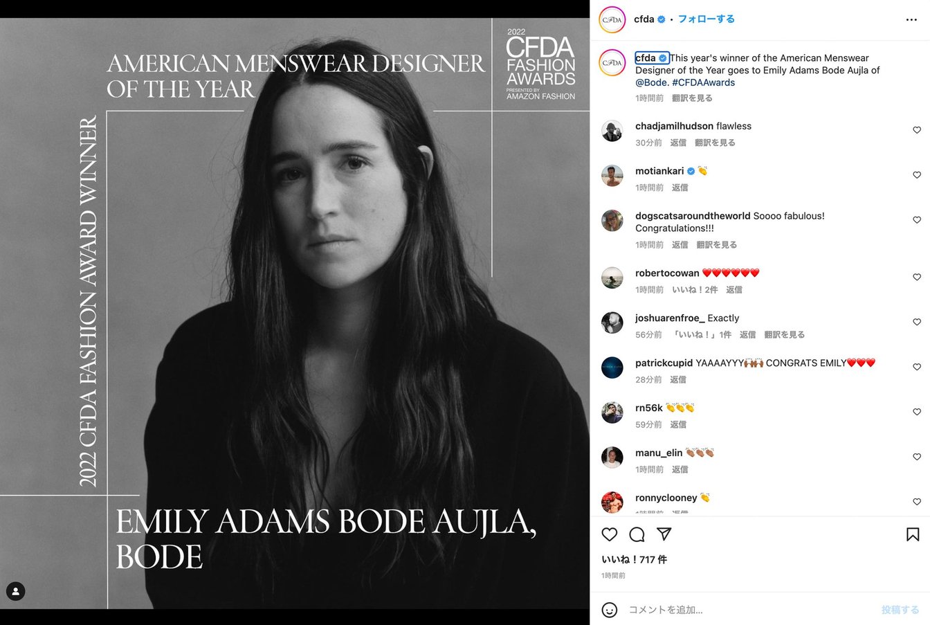 米国ファッション協議会(CFDA) 公式インスタグラムより