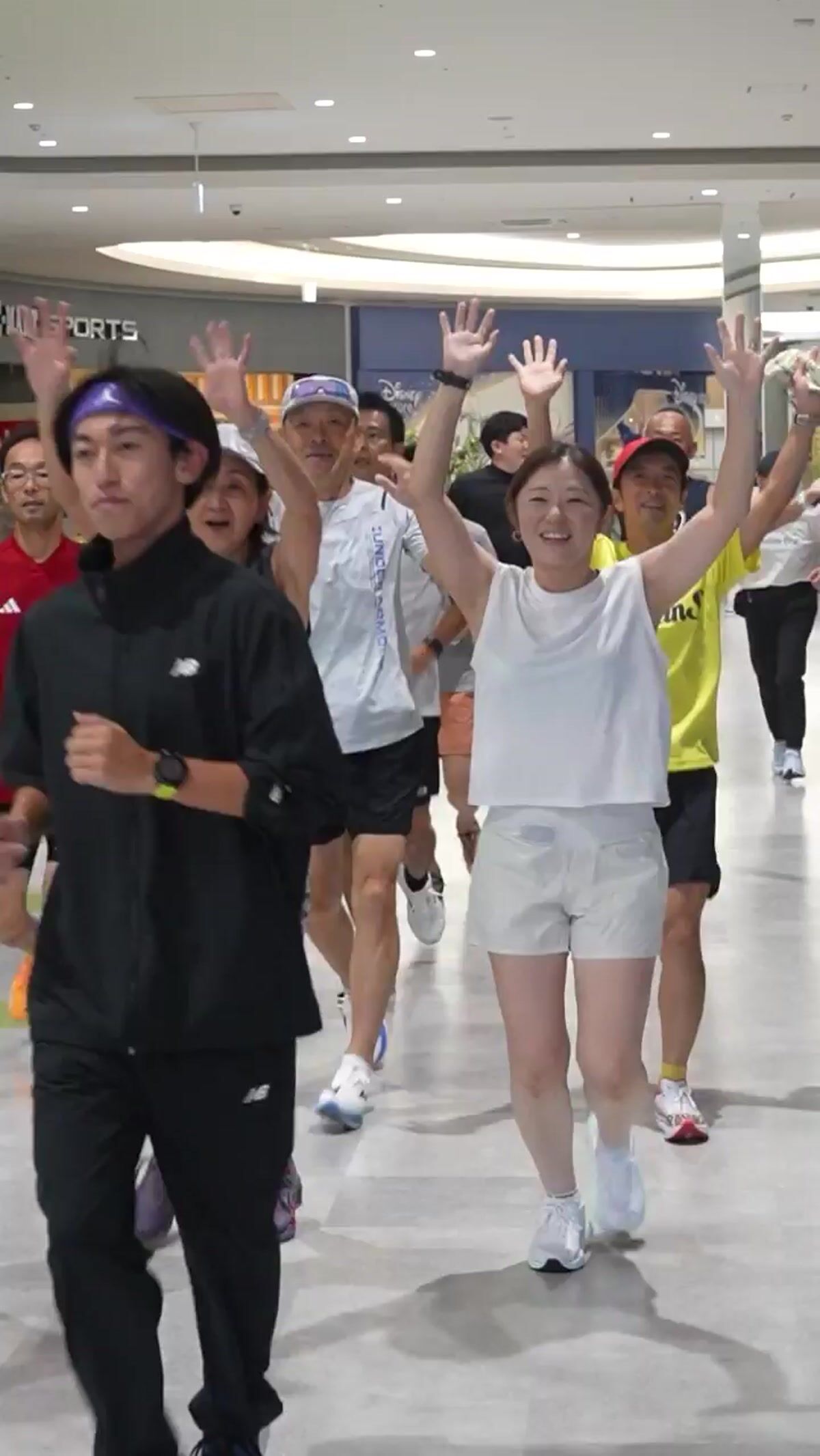 ある秋の日曜日。朝8時に群馬・太田のイオンモールを記者が訪ねると、まだガラ空きの駐車場に軽装の老若男女が続々と集まってきた。8時半になるとオープン前の館内に誘導され、2階のフードコート内の広場に約30人が集合。今からここで行われるのはランニングイベントだ。施設の外周などではなく、営業前のモール館内を走るイベントは珍しい。