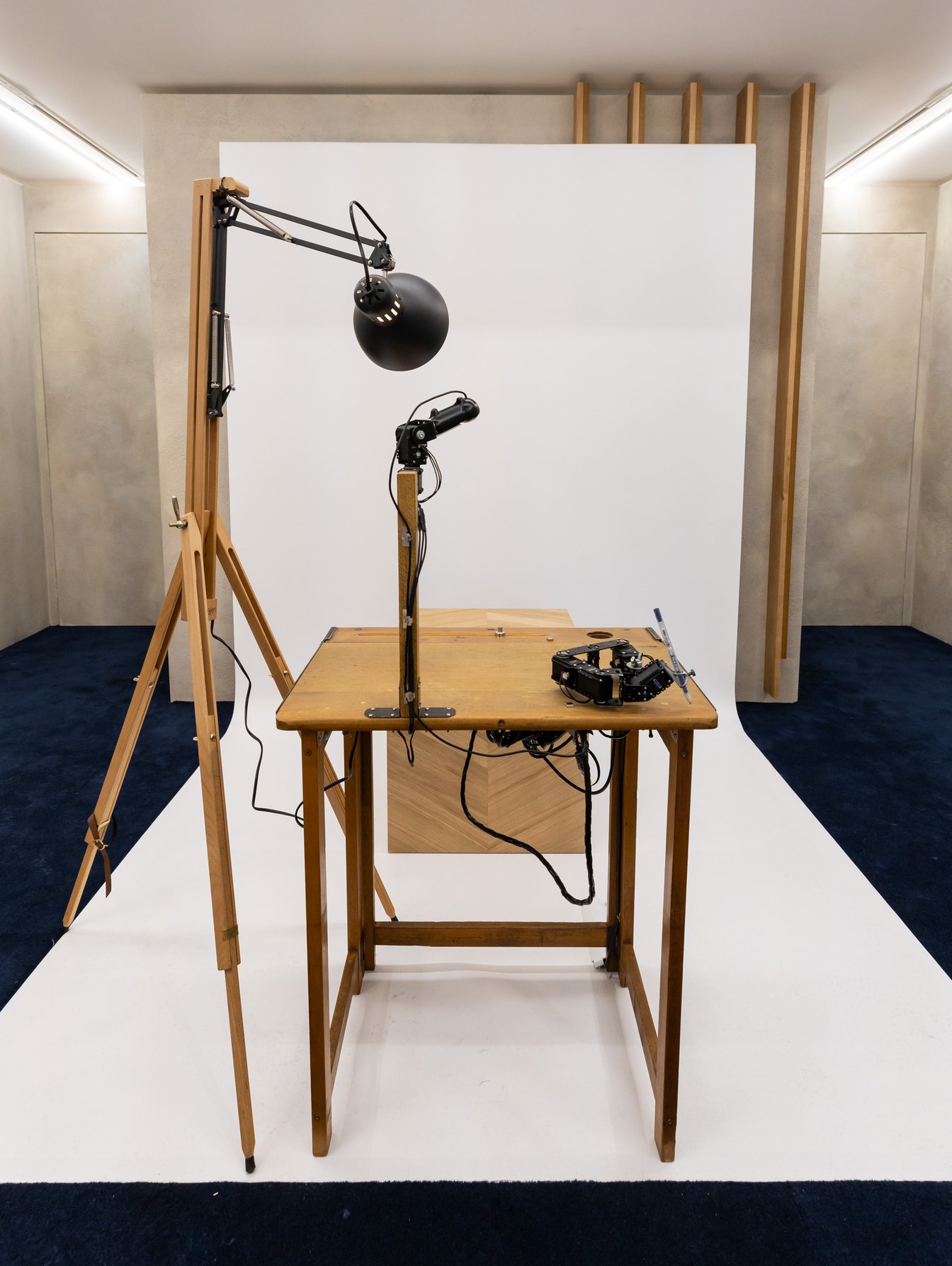 フロアの一角には、通常の店舗にはない異色のブースも。アーティストのパトリック・トレセ(Patrick Tresset)による作品「ポールという名のロボット」だ。カメラが人間の顔を捉え、ロボットアームがポートレートを描くインスタレーションを、来店客のみ体験することができるという。驚きの中に違和感をはらんだアート作品が、レアでユニークな今回のカプセルコレクションと共鳴する。