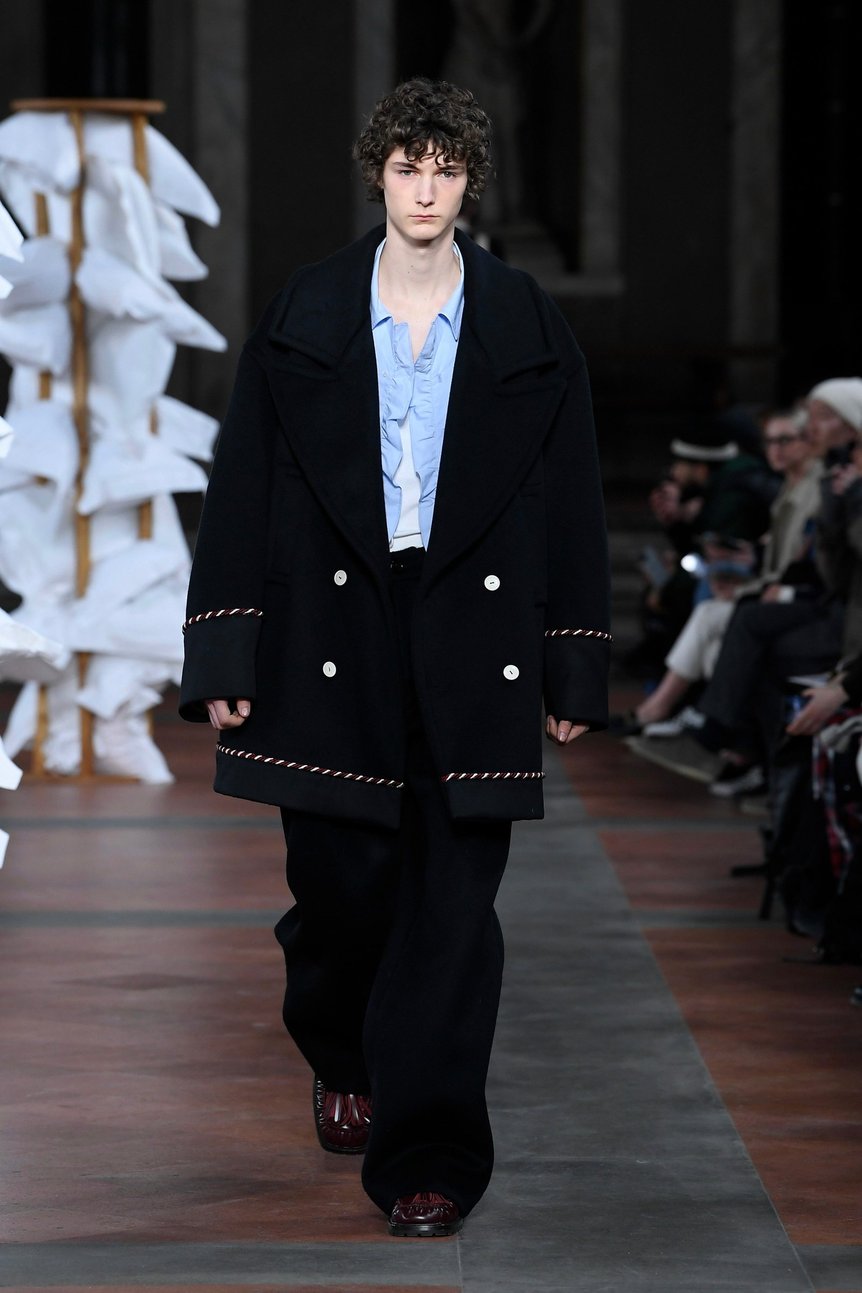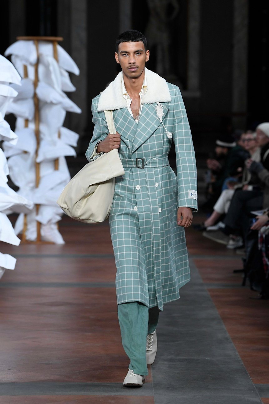 ショー直後には、ハリー・スタイルズ(Harry Styles)からの投資を受けたとし、ブランドの少数株を売却したと説明。パジャマからユニフォーム、ワックス・ジャケットまで、英国のワードローブでおなじみのシンボルが、デイリー独自の解釈で再構築された同コレクションを皮切りに、英国発のメゾンに向けた新章はスタートする。