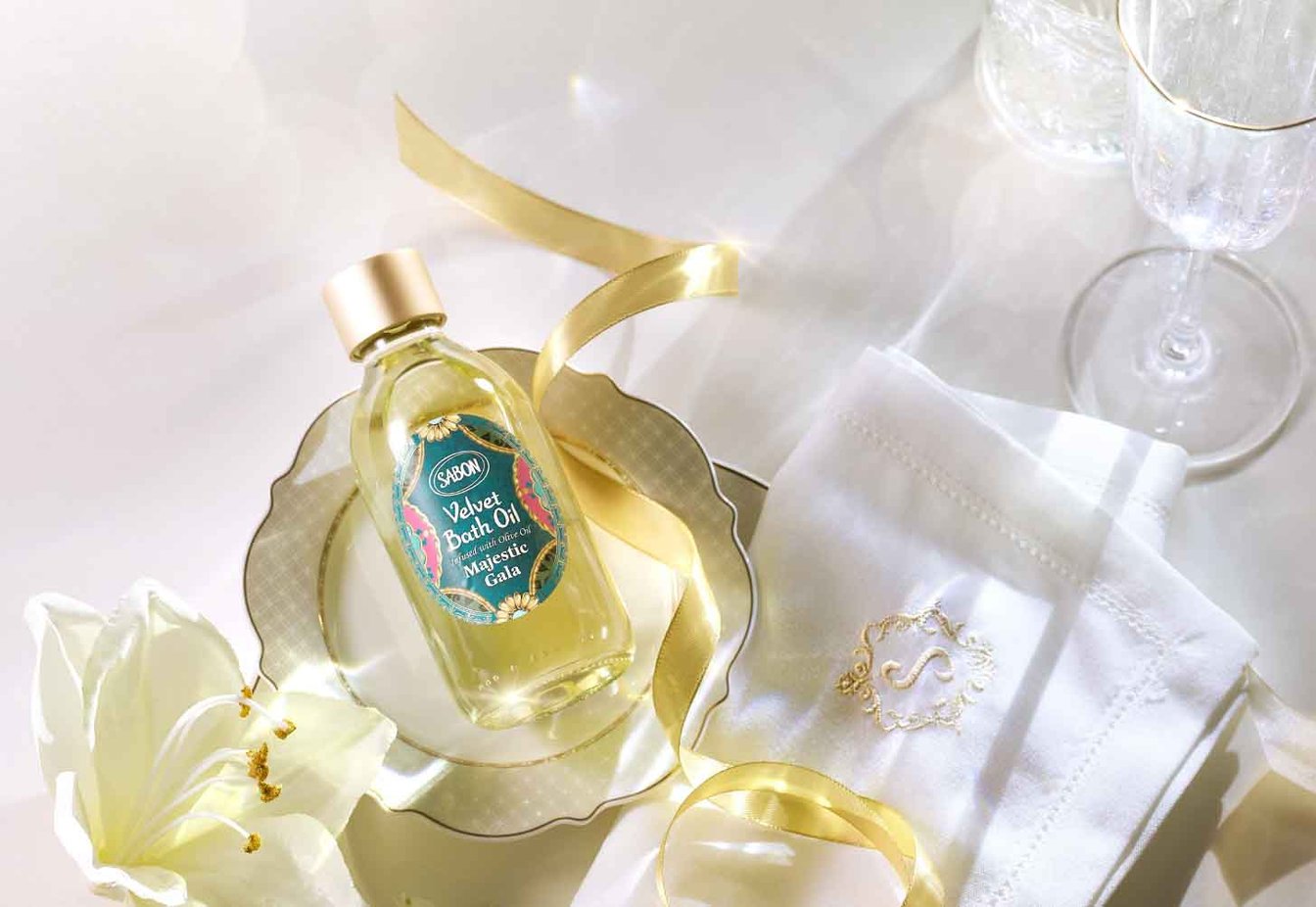 お湯に注ぐとミルキーなテクスチャーへと変化する香り豊かなバスオイル。サンフラワーオイル、オリーブオイルがブレンドされていて、入浴後も肌にベルベットのようなうるおいを残し、なめらかな肌が叶います。