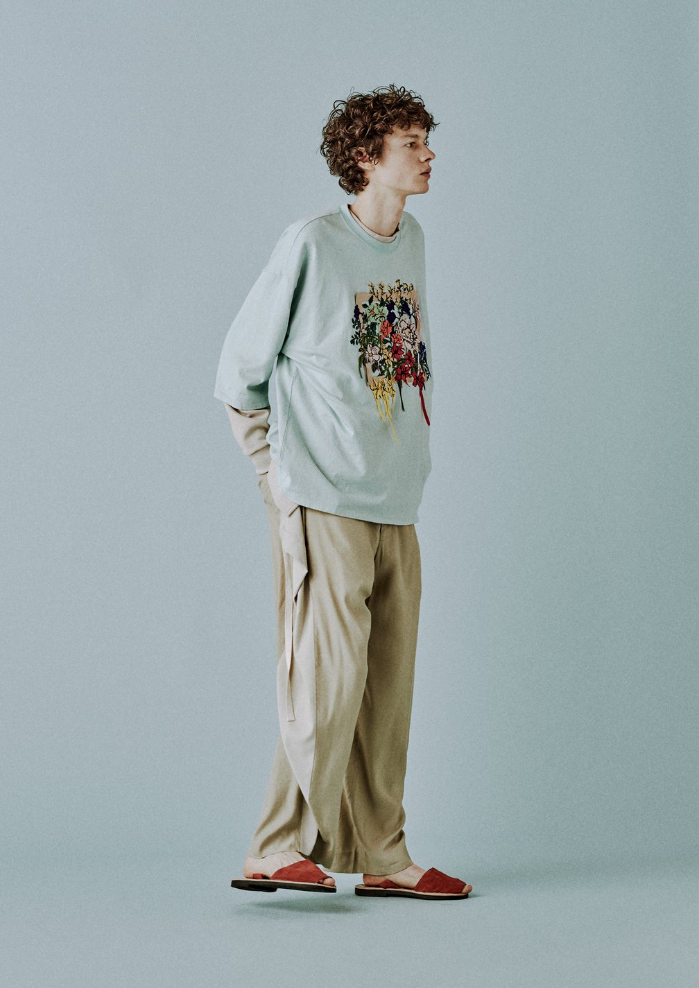 大嶋:ミントは初挑戦です(笑)。このTシャツは刺繍もカラフルだし、それなら明るい色にしたいなというのがあって。今、店頭に並んでいる2020年秋冬コレクションではピンクのアイテムがあったりと、最近は鮮やかな色を使いがちなんですよね。ハッピーな色味というか、そういう気分なんです。