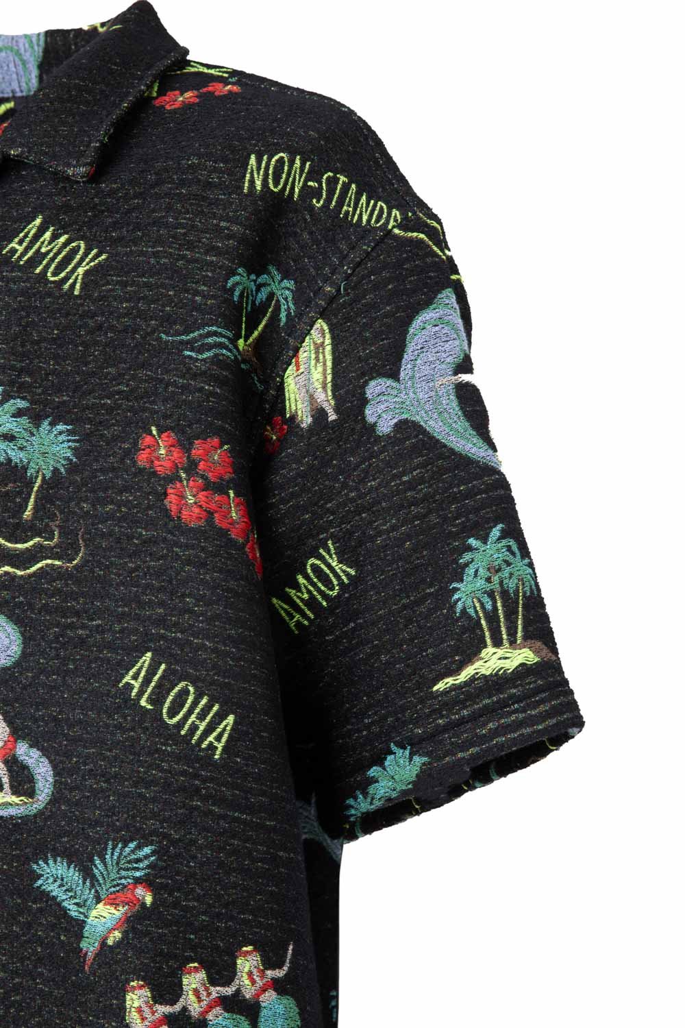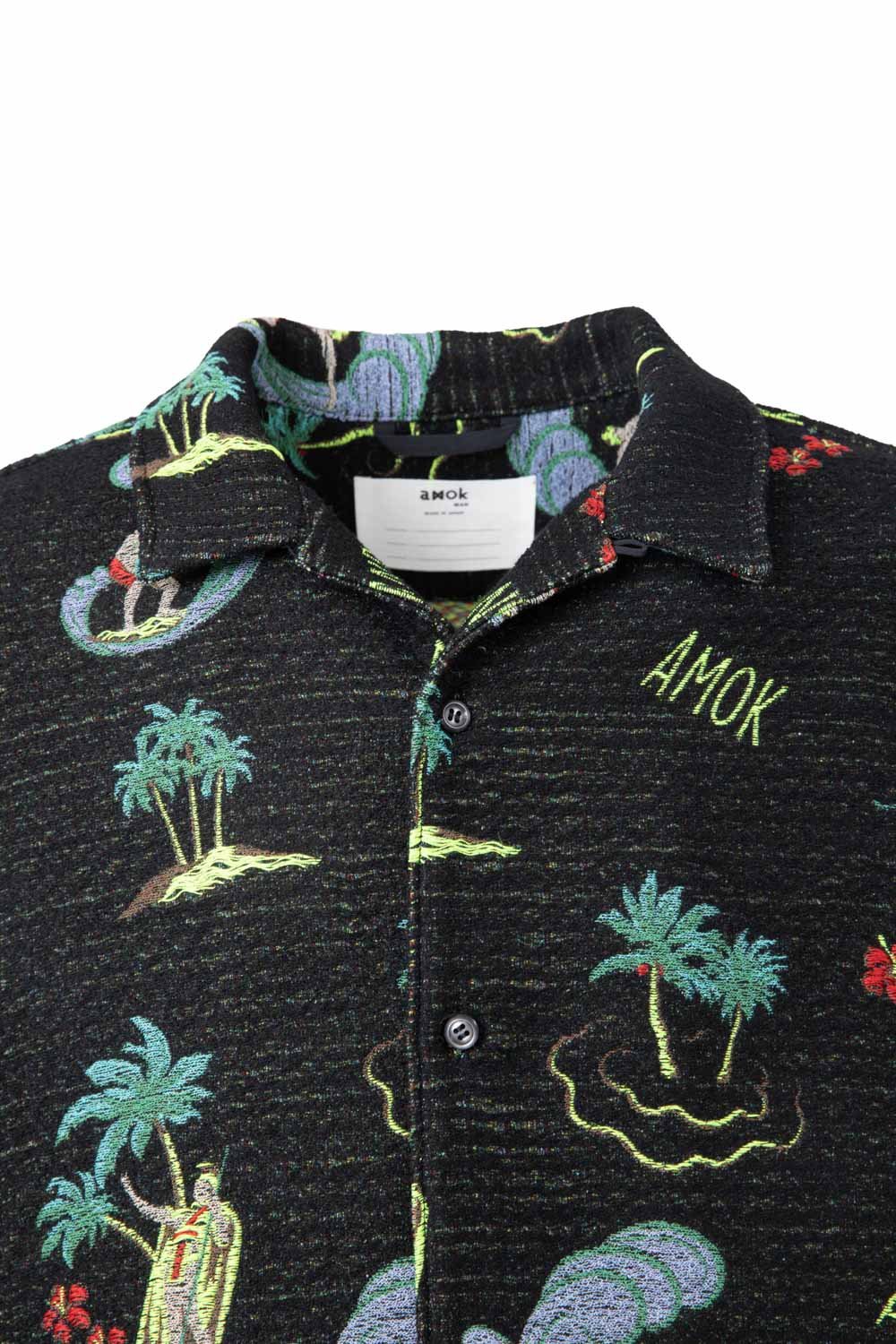 大嶋:パイルジャカードのアイテムもアモクの定番になりつつあって、今シーズンはアロハシャツを作ってみたいなと思い挑戦してみました。所々、飛ばし縫いで糸を緩くしたりとディテールにもこだわっています。