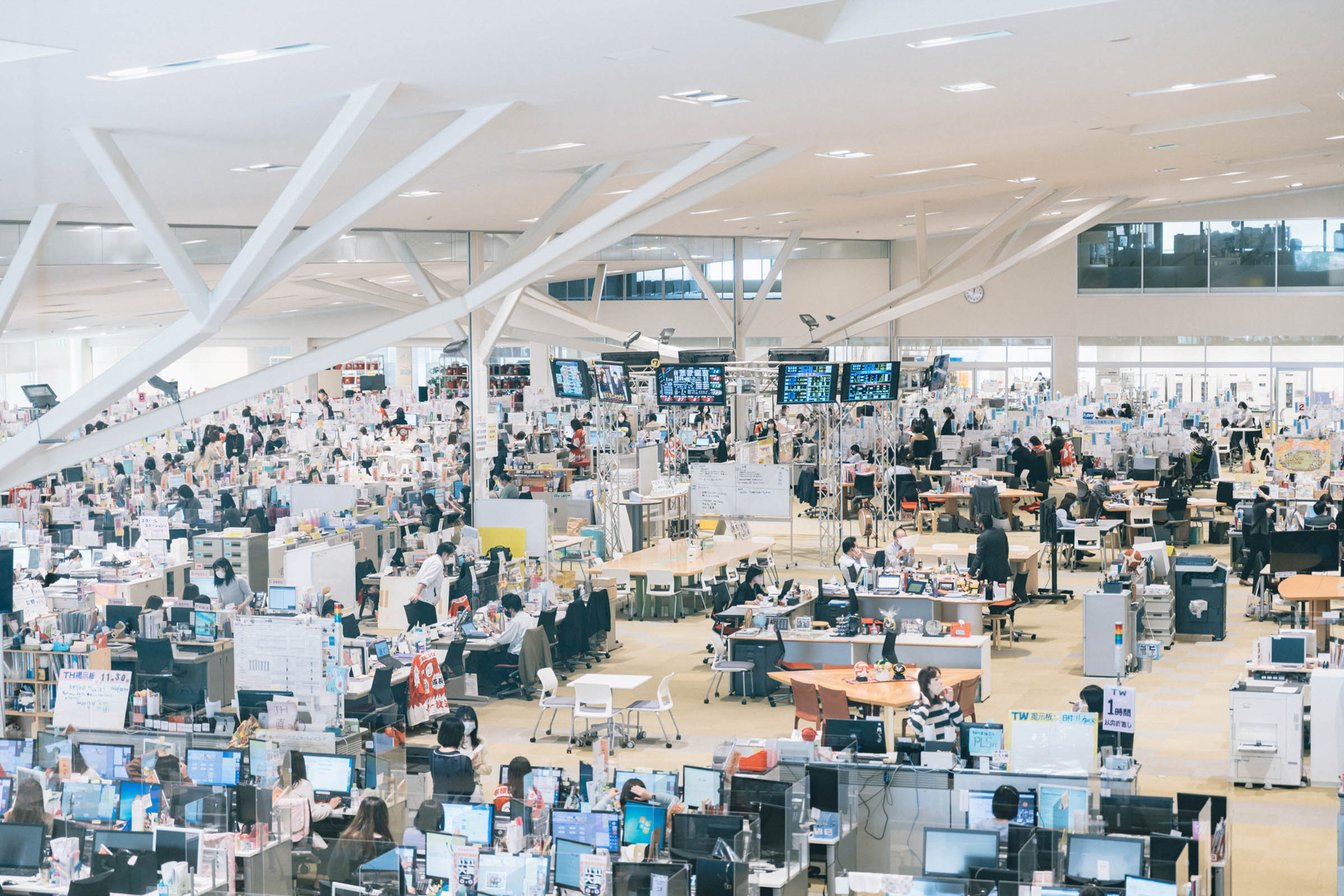 2001年に“森の中の工場”をイメージした現在の製造工場「薬彩工園」が竣工。2007年には再春館ヒルトップ内に本社を移転し、コールセンターや社長室を含むすべての職種が壁のないワンフロアで広がる「つむぎ商館」が完成しました。