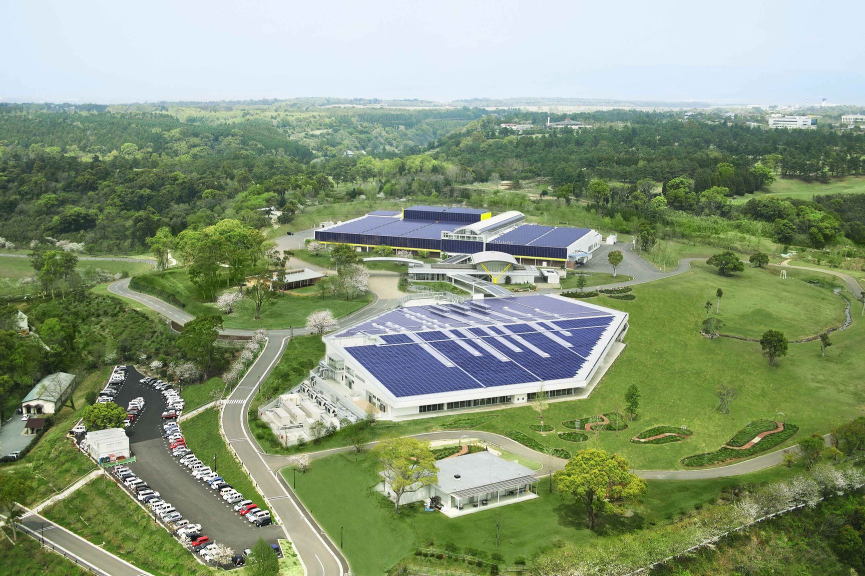 熊本県・高遊原にある本社機能と工場が一体化した再春館製薬所の拠点、再春館ヒルトップ。東京ドーム6個分にも及ぶ広大な敷地内の約80%は、雑木林、花畑、芝生などの緑地帯で占められています。「自然の恩恵を享受している自分たちが、自然に負担をかけてはならない」という考えのもと、環境に配慮した取り組みを推進。再春館ヒルトップの年間使用電力の100%に充当する電気を発電する、太陽光発電設備も完備しています。