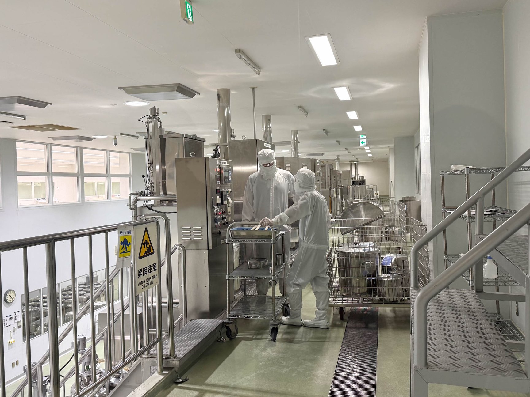 調合室。調合に使用する釜や機械部品は、点検も兼ねて毎日2時間かけて手洗いで洗浄