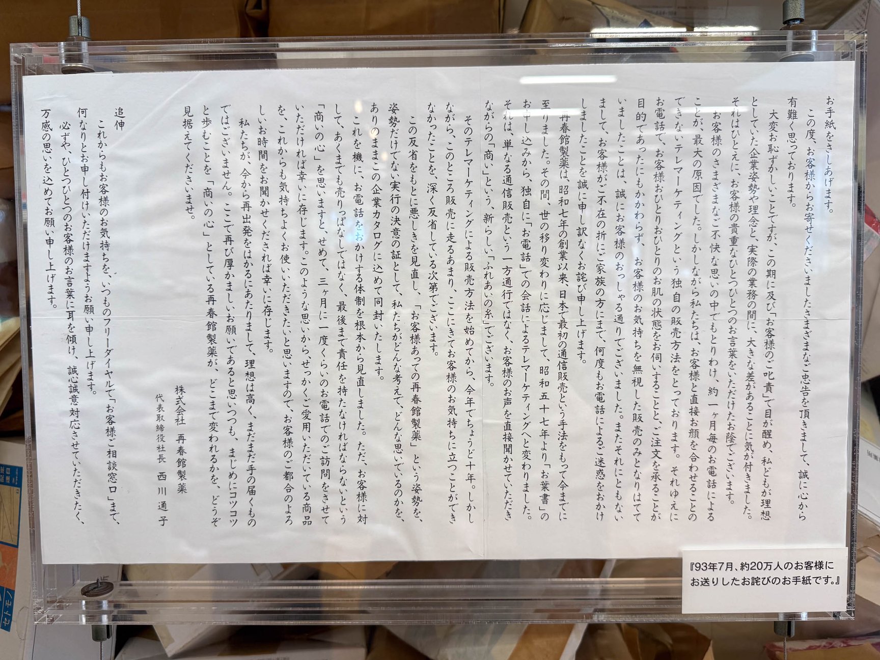 通信販売を中心とする再春館製薬所には、注文や「無料お試しセット」の申し込みを含め、1日に約2000件もの問い合わせがあるそう。その内訳はインターネットが6割、電話が3割、ファックスやハガキが1割ですが、電話口やチャットなどでの対応にAIを使用せず、すべて「お客様プリーザー」と呼ばれる専門職が応対しています。