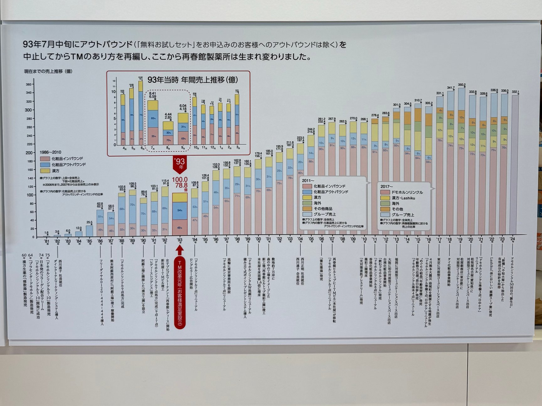 1974年、日本で初めて化粧品にコラーゲンを配合したクリーム「ドモホルンリンクル」を発売。1982年には、現在も続くダイレクトテレマーケティングシステムを導入しました。売上は順調に拡大していたものの、売上を追い求めた過剰な電話セールスと勧誘により、苦情や返品が相次いだため、1993年に「TM(テレマーケティング)改革」を実施。電話での売り上げが全体の7割を占めていた当時に、営業電話を3ヶ月間一切停止し、コミュニケーターの意識と販売のシステムを見直しました。さらに、「お客様相談室」を新たに設置することで、顧客満足を叶えるサービス体制を強化しました。