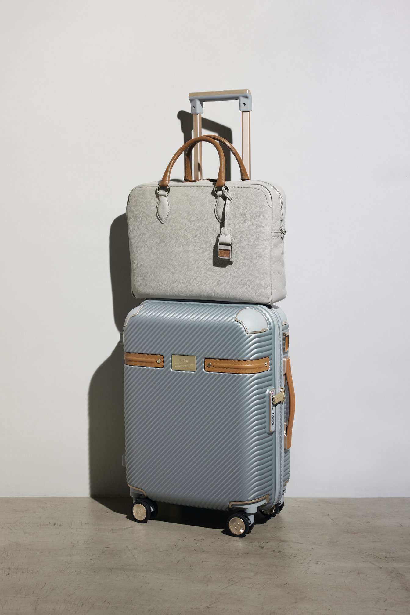 銀座旗艦店の限定モデルの「リッチモンド 2」は、アルミニウムを思わせるシルバートーンの本体に、レザー製ハンドルとラゲッジタグ、マットゴールドのメタルパーツが魅力。価格は8万1400〜10万1200円
