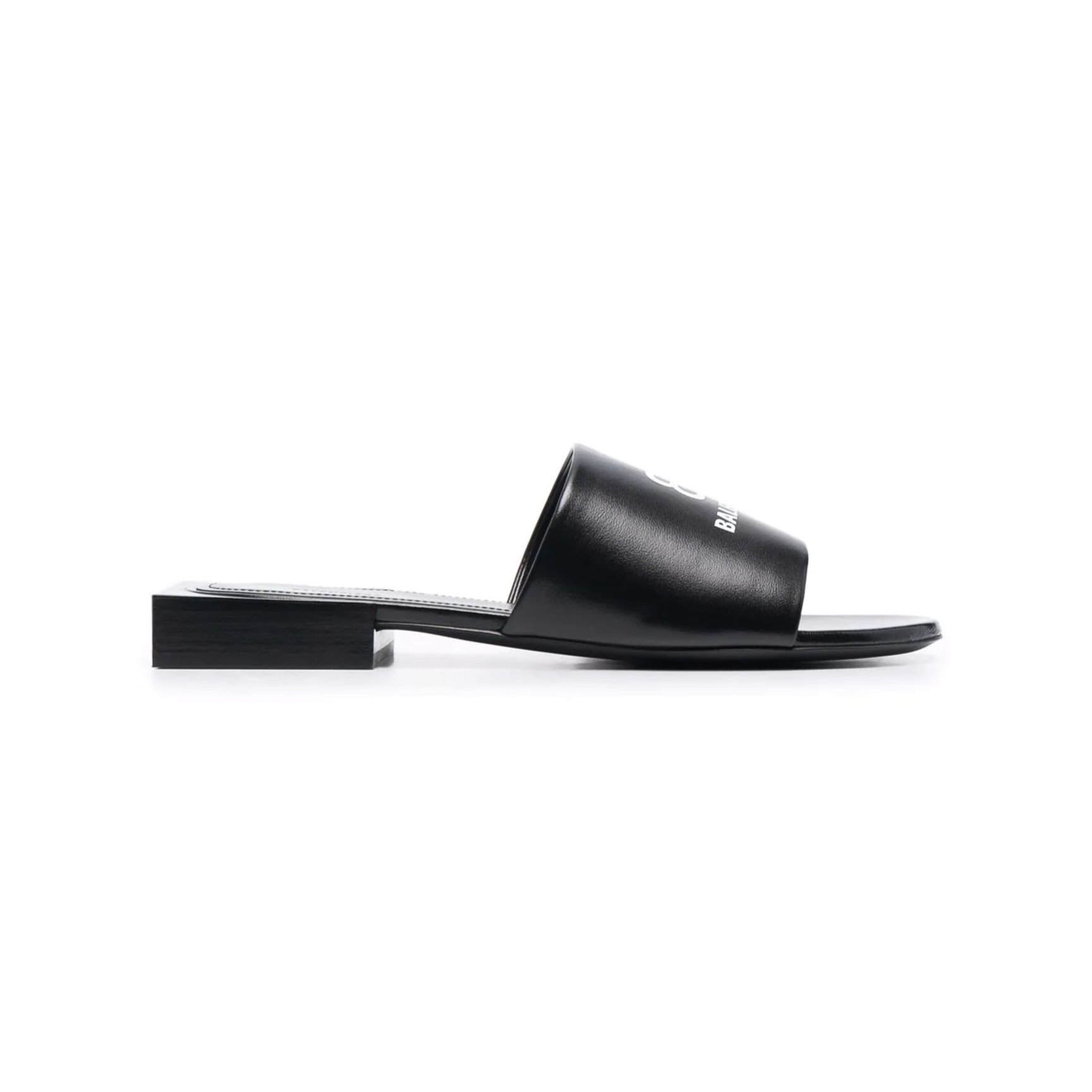 シンプルながら、スクエアヒールでほんのり都会的なエッセンスを加えたサンダル。スリッポンタイプでするりと履けるうえ、スタイルを選ばないので重宝しそう。ブラックレザーに映えるホワイトのブランドロゴが、装いのアクセントにひと役。