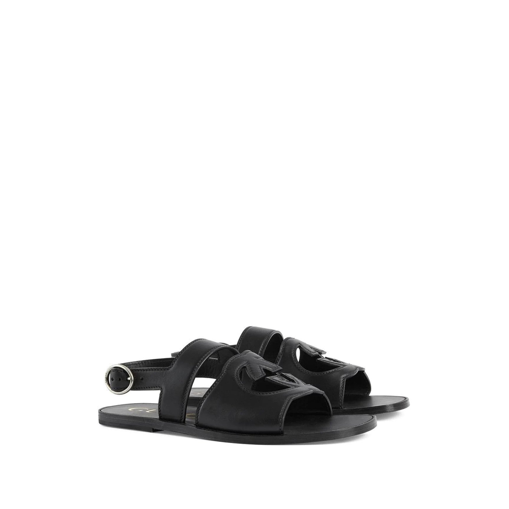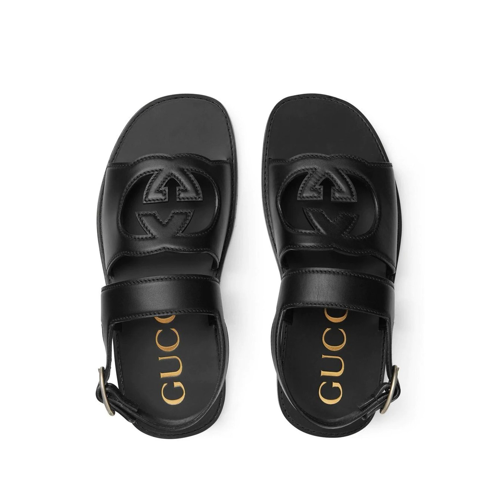 カットしたインターロッキングGがアイコニックな、「グッチ(GUCCI)」のストラップサンダル。ラフなコーディネートもラグジュアリーに仕上がる一足は、オールブラックながらインパクト大。一気に印象が変わる色違いのブラウンも要チェック。