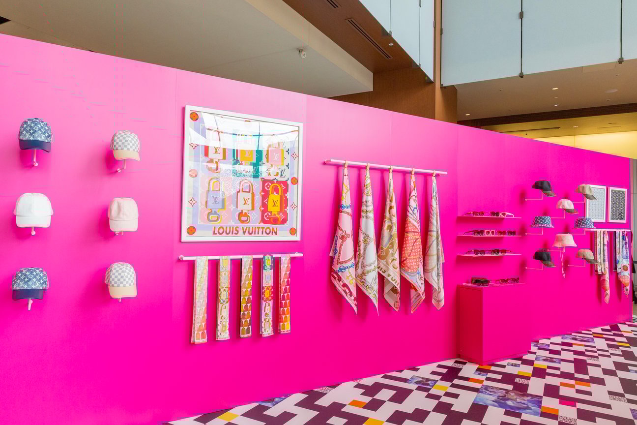 「SEE LV」展は8月21日までの開催。鮮やかなピンクのロゴを目印に、ルイ・ヴィトンの歴史を巡る特別な旅を楽しんで。
