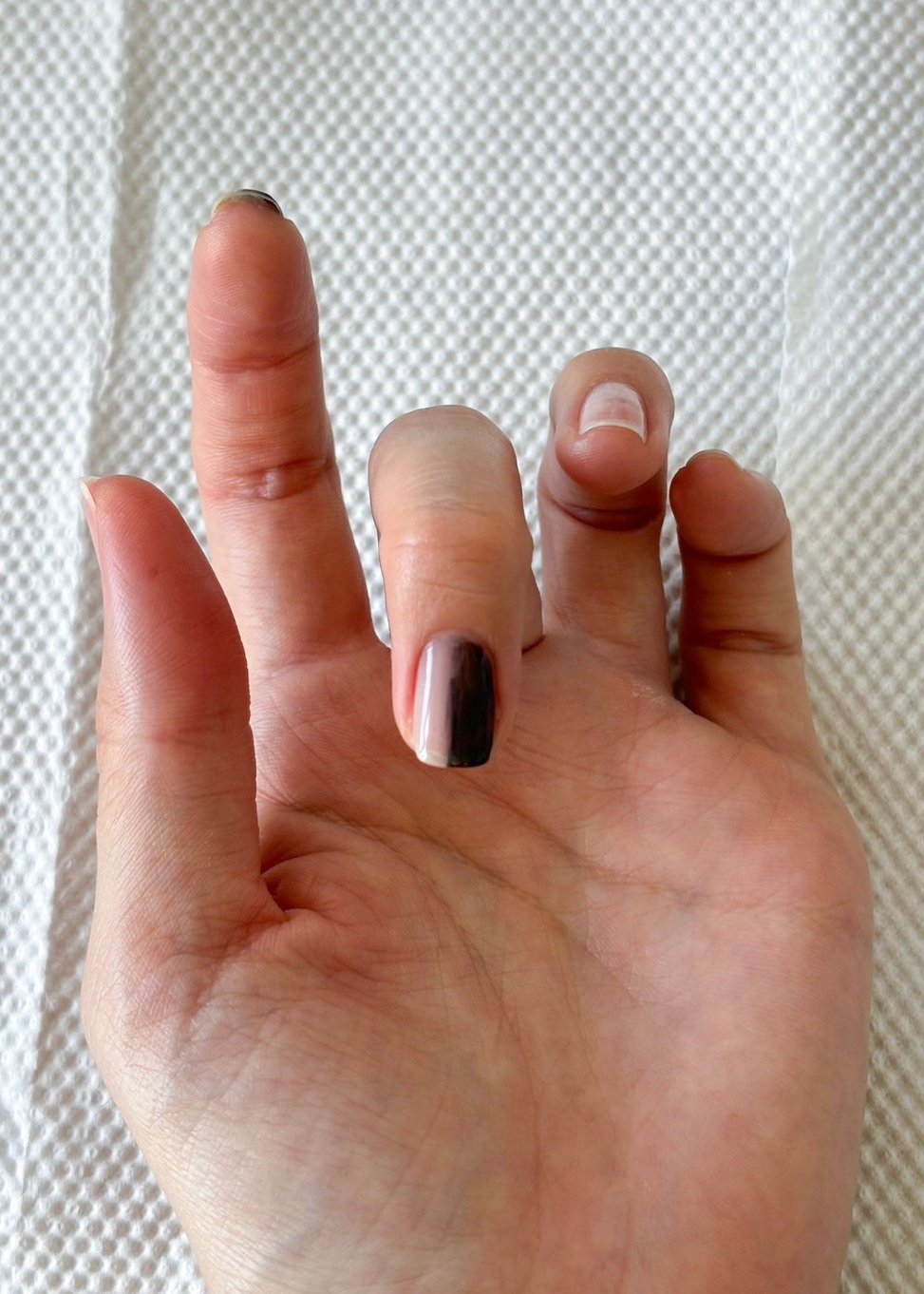 ③マニキュリストのヌードをリコリスに少し重ねるイメージで塗ります。