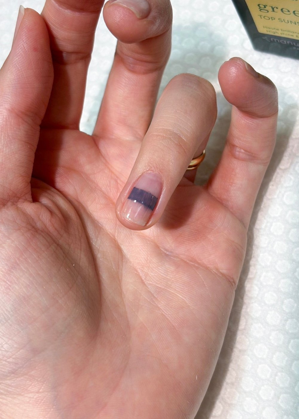③カラーを引っ張るイメージでトップコートを塗ったら完成です。